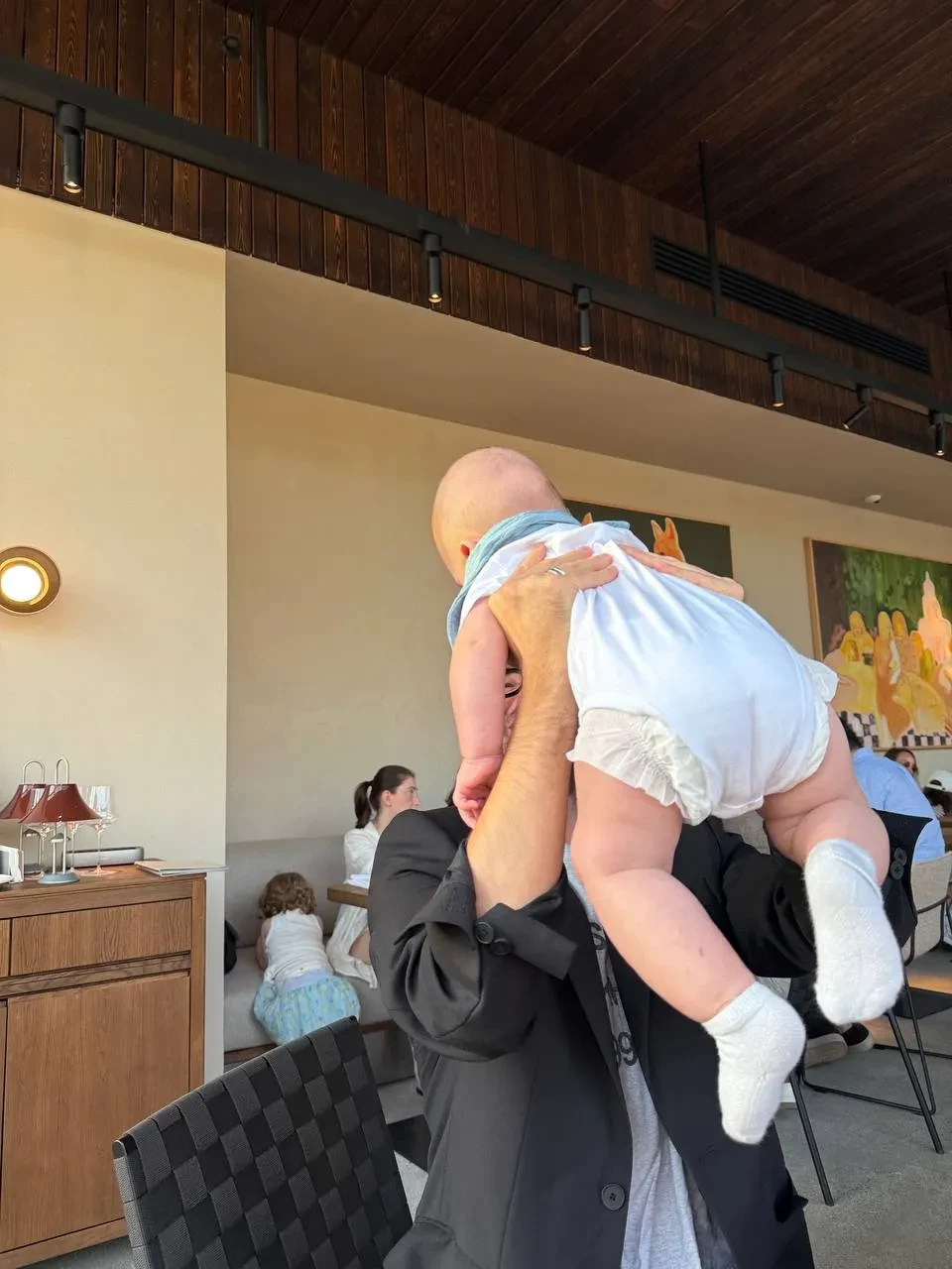 На снимках запечатлён Фёдор на руках у родителей. На одном фото можно рассмотреть часть лица мальчика, которому в сентябре исполнится пять месяцев. "Классный выходной — он такой. Вещи на заднем плане — это Саша вернулся из Питера. Бросили разбор на потом, грех в такую погоду не гулять", — подписала 24-летняя Виктория фотографии.
