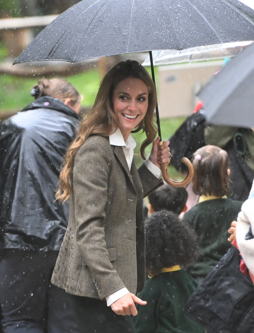 Кейт появилась перед фотографами в белой рубашке, шерстяном жакете и с нетипичной для неё объёмной укладкой. В сети уже начали обсуждать — натуральные это волосы принцессы или парик, ведь раньше её локоны не отличались такой густотой и она практически никогда не меняла их оттенок. По слухам, Кейт может носить парик из-за рецидива рака, на фоне которого она якобы резко похудела.
