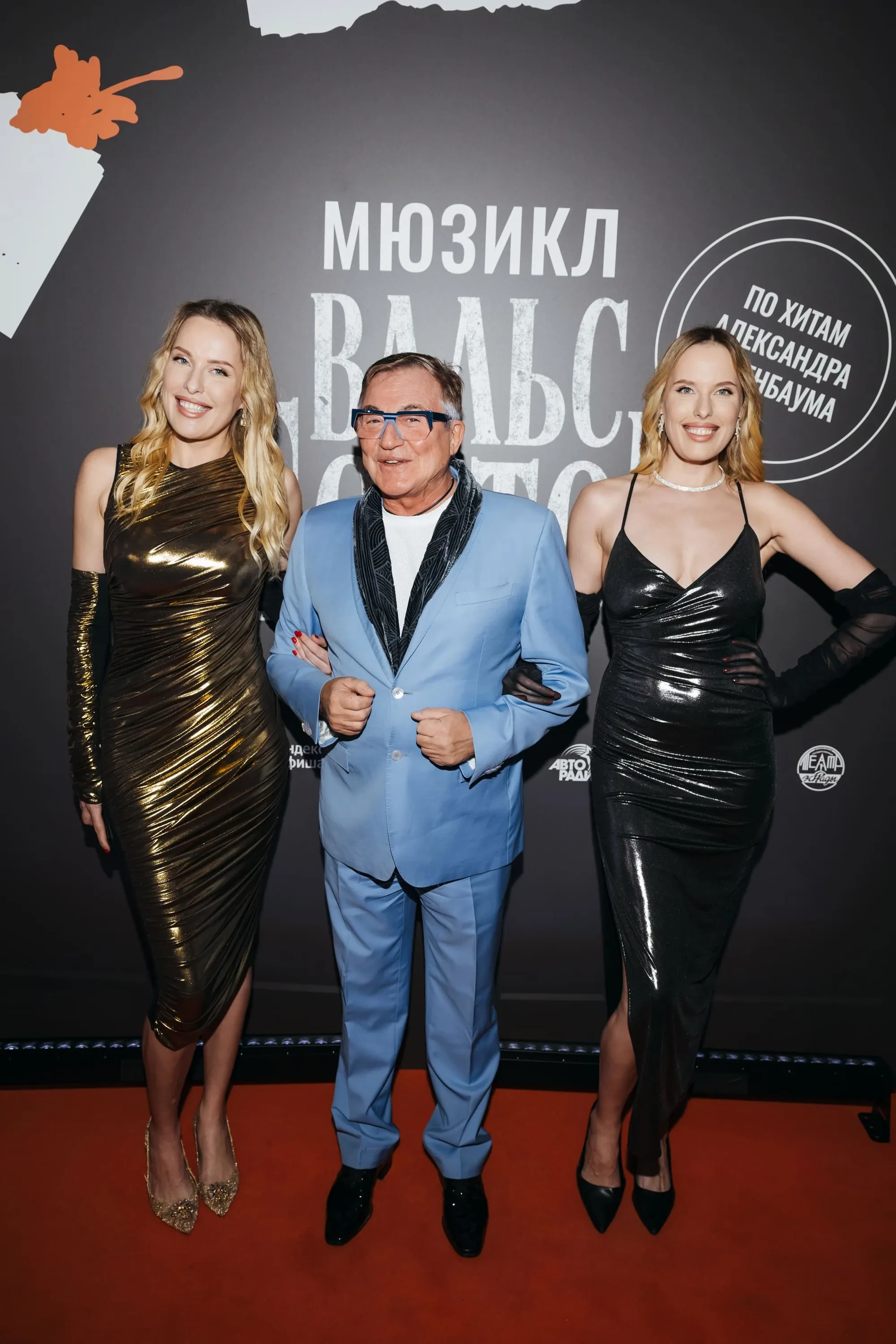 В Москве прошла светская премьера мюзикла "Вальс-бостон". Гостями вечера, который состоялся в Театре эстрады на Берсеневской набережной, стали Владимир Познер и Михаил Шуфутинский (в компании жён), Лариса Долина и Алеся Кафельникова, которая пришла на премьеру с мужем Георгием Петришиным, но он в кадр не попал. Фотографам позировали Наташа Королёва и Тарзан, которые недавно отметили 22-ю годовщину брака. 65-летний Дмитрий Дибров, который сейчас переживает скандальный развод с женой, вышел на красную дорожку в компании певиц, сестёр-близняшек Кати и Волги Король.
