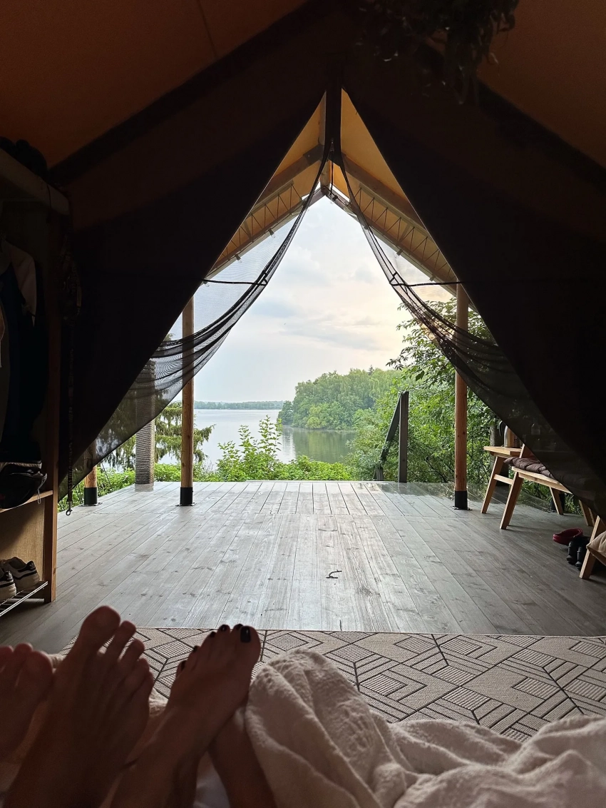На снимках 37-летняя актриса позирует на фоне природы и реки. Также Асмус добавила фотографию из кровати вместе с новым бойфрендом, а также его фото со спины. Его лица Кристина не показала и не раскрыла личность.