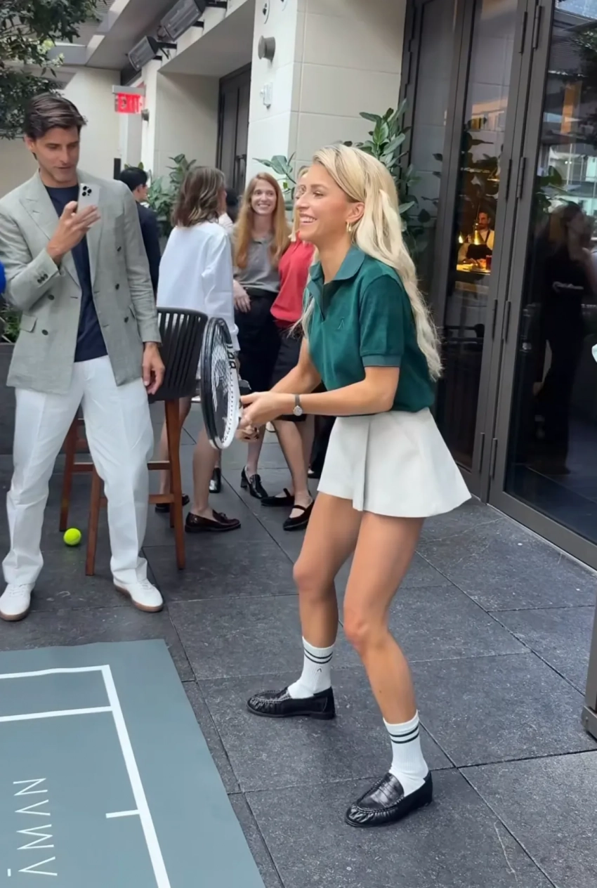 На мероприятии 31-летняя Кристина Романова вместе с 38-летней звездой тенниса Марией Шараповой провели лекцию, поиграли в теннис, а после отправились смотреть турнир вместе с другими звёздами.