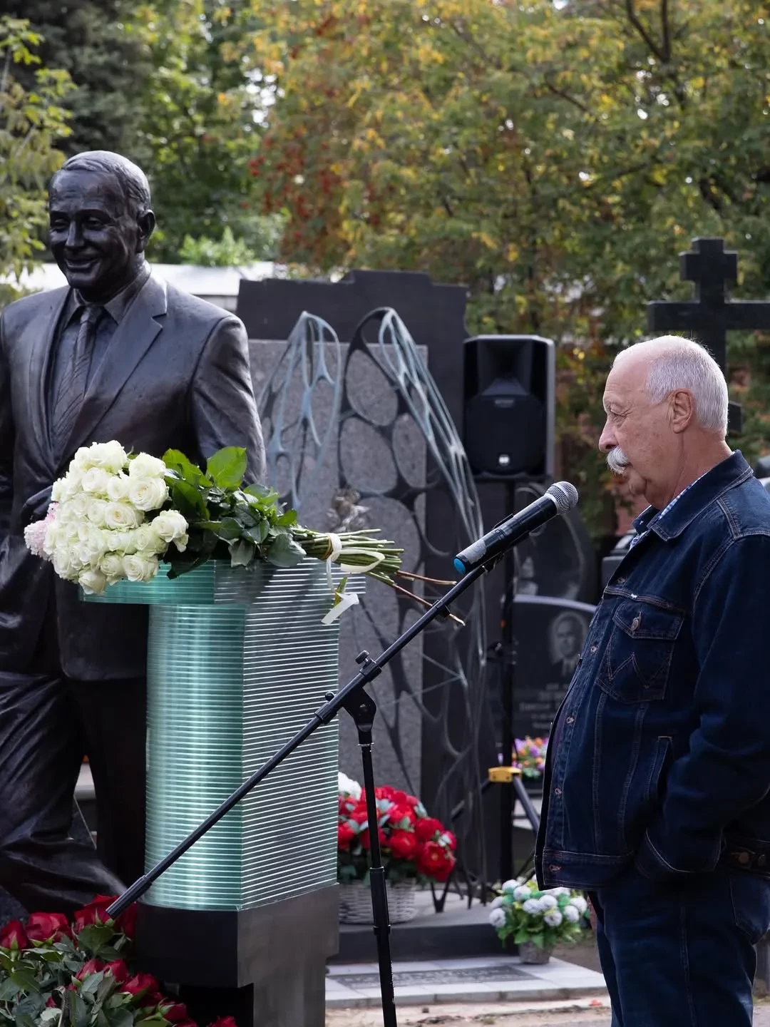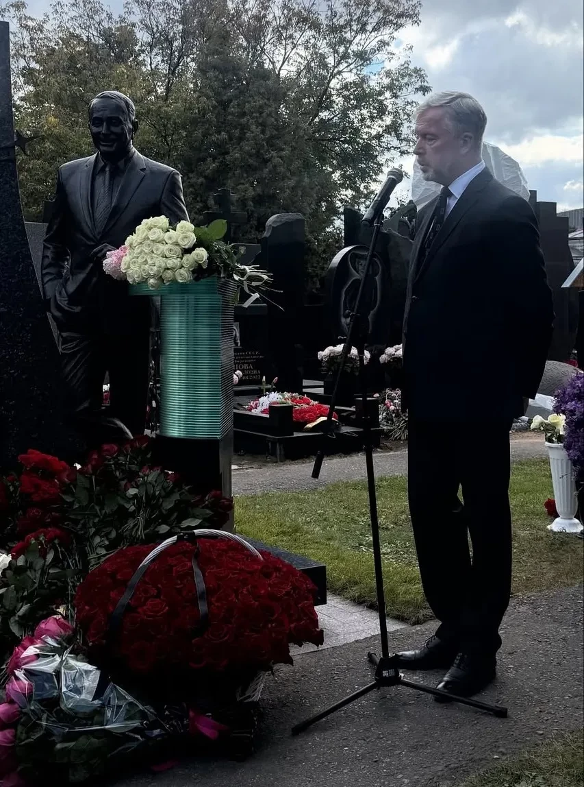 Константин ЭрнстЕкатерина и Александра Стриженовы, Эдгард ЗапашныйЗнаменитости принесли цветы к могиле Маслякова и выступили с речами. "Александр Васильевич стоит, облокотившись на телевизионную стойку, где у него всегда лежал сценарий игры КВН, и улыбается своей фирменной неповторимой улыбкой! Кажется, что вот-вот мы услышим команду "Мотор!" и Масляков скажет: "Мы начинаем КВН!". Мы аплодируем президенту планеты КВН — человеку, чьё имя навсегда вписано в историю российского телевидения", — написала Екатерина Стриженова в соцсетях.