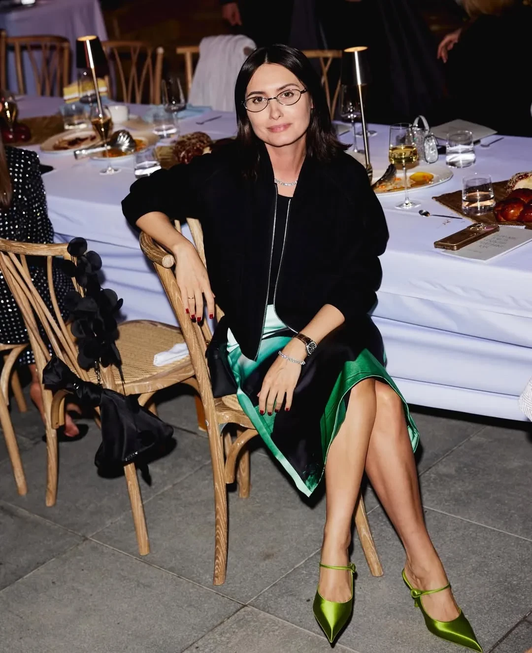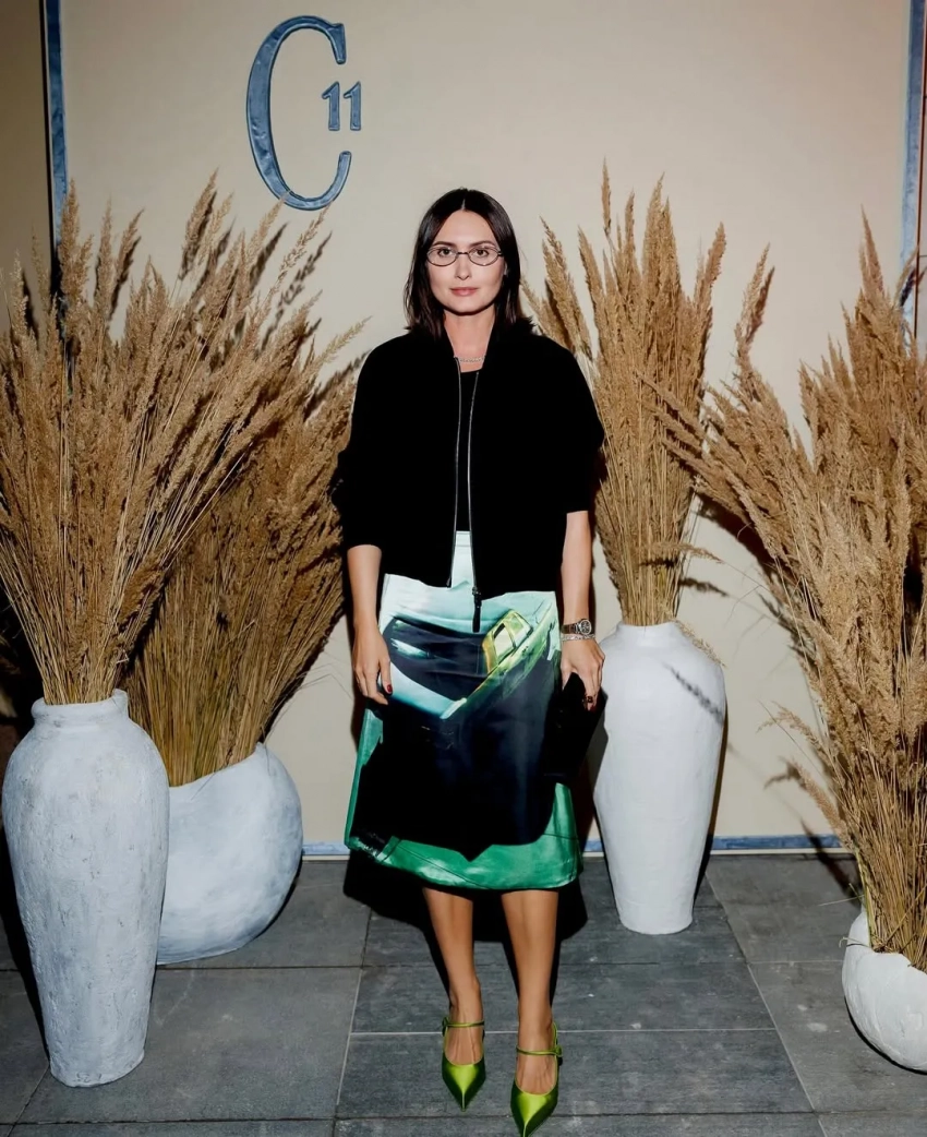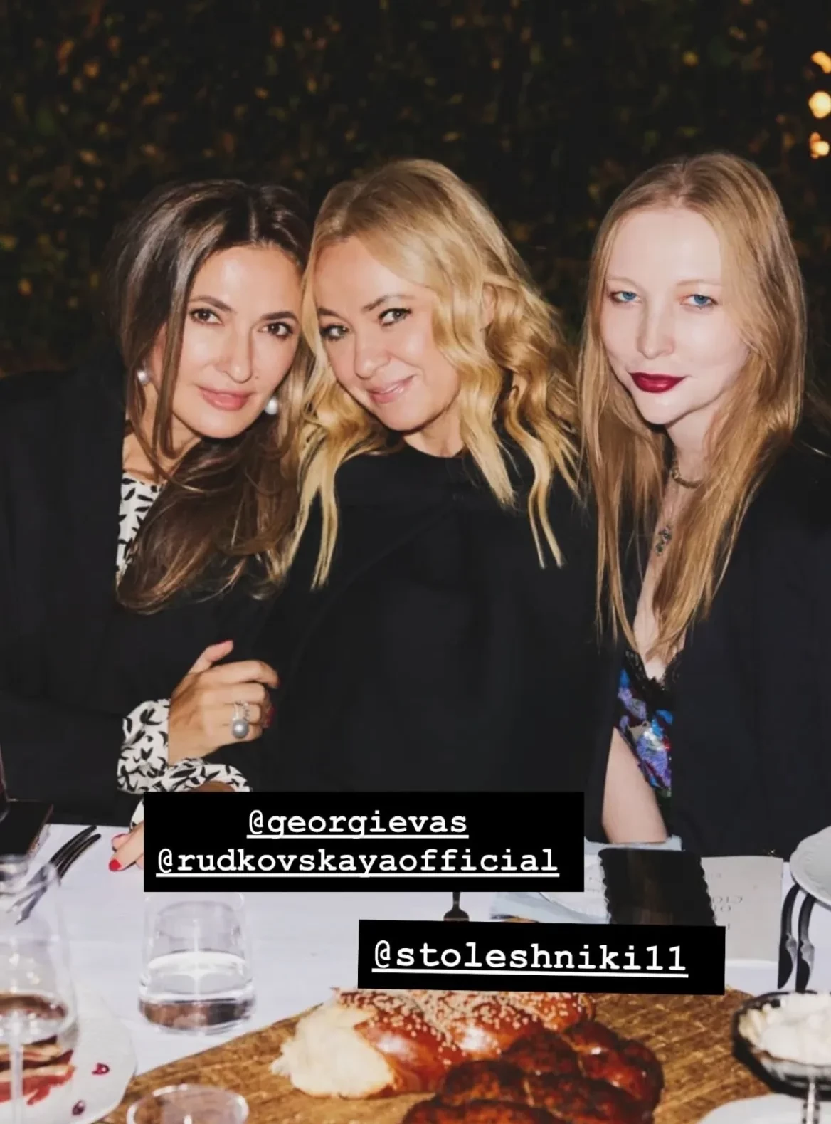 Снежанна Георгиева, Яна Рудковская и Юлия Пош36-летняя Мария Миногарова, которая недавно вышла замуж за Александра Горчилина, пришла на ужин в платье Vetements и с чёрной помадой на губах, а Снежанна Георгиева — в чёрно-белом платье и туфлях из новой коллекции Prada. Бывший главный редактор журнала Harper’s Bazaar Шахри Амирханова, которая последние годы живёт в Израиле, приехала на мероприятие на велосипеде и в кейпе Cloche.