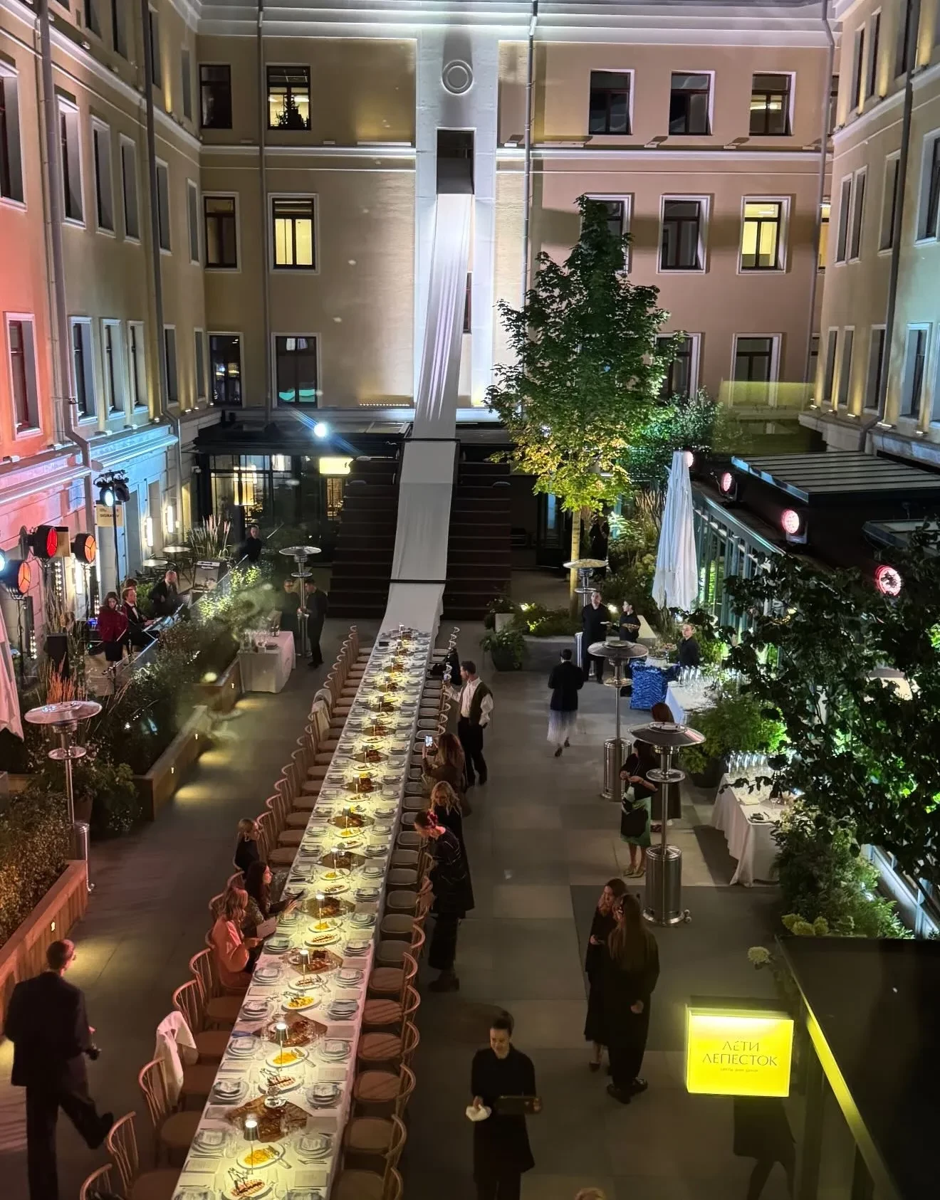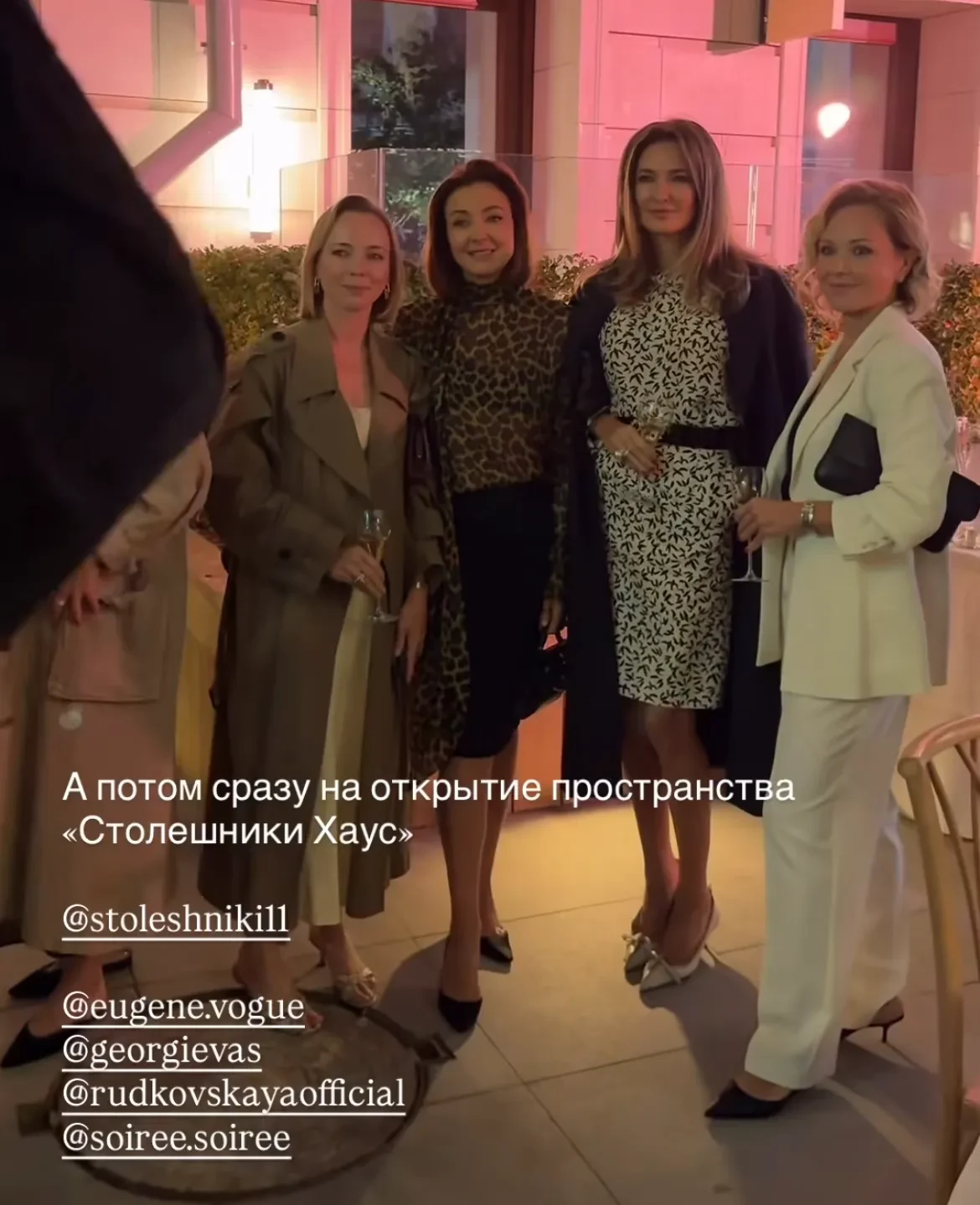 Вчера во дворе пространства "Столешники Хаус" прошёл светский ужин, который посетили: Яна Рудковская, Мария Миногарова, Снежанна Георгиева, Ксения Соловьёва, Елена Вакуленко-Пинская, редкая гостья светских вечеринок Шахри Амирханова, Юлия Калманович, Ирина Вольская и другие.