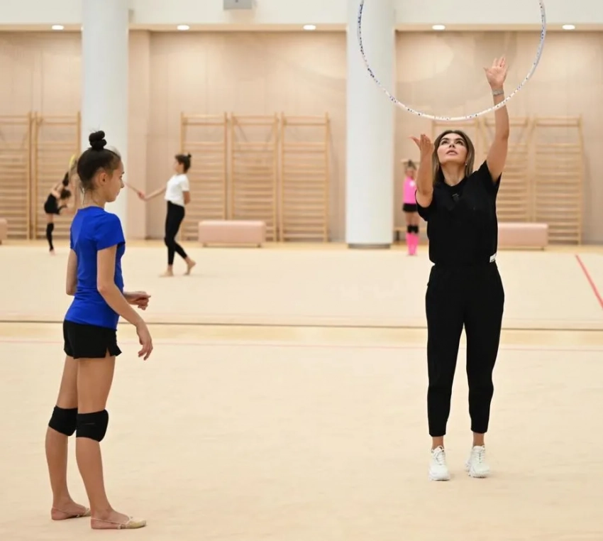Алина Кабаева снова посетила тренировки гимнасток в своей академии художественной гимнастики "Небесная грация" в Сочи.