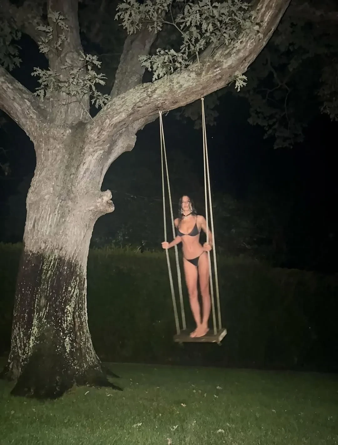 39-летняя Ирина Шейк снялась в необычной фотосессии. Российская супермодель поделилась в соцсетях кадрами, на которых она, в чёрном бикини и чокере с большим крестом, позирует ночью на качелях и у бассейна.