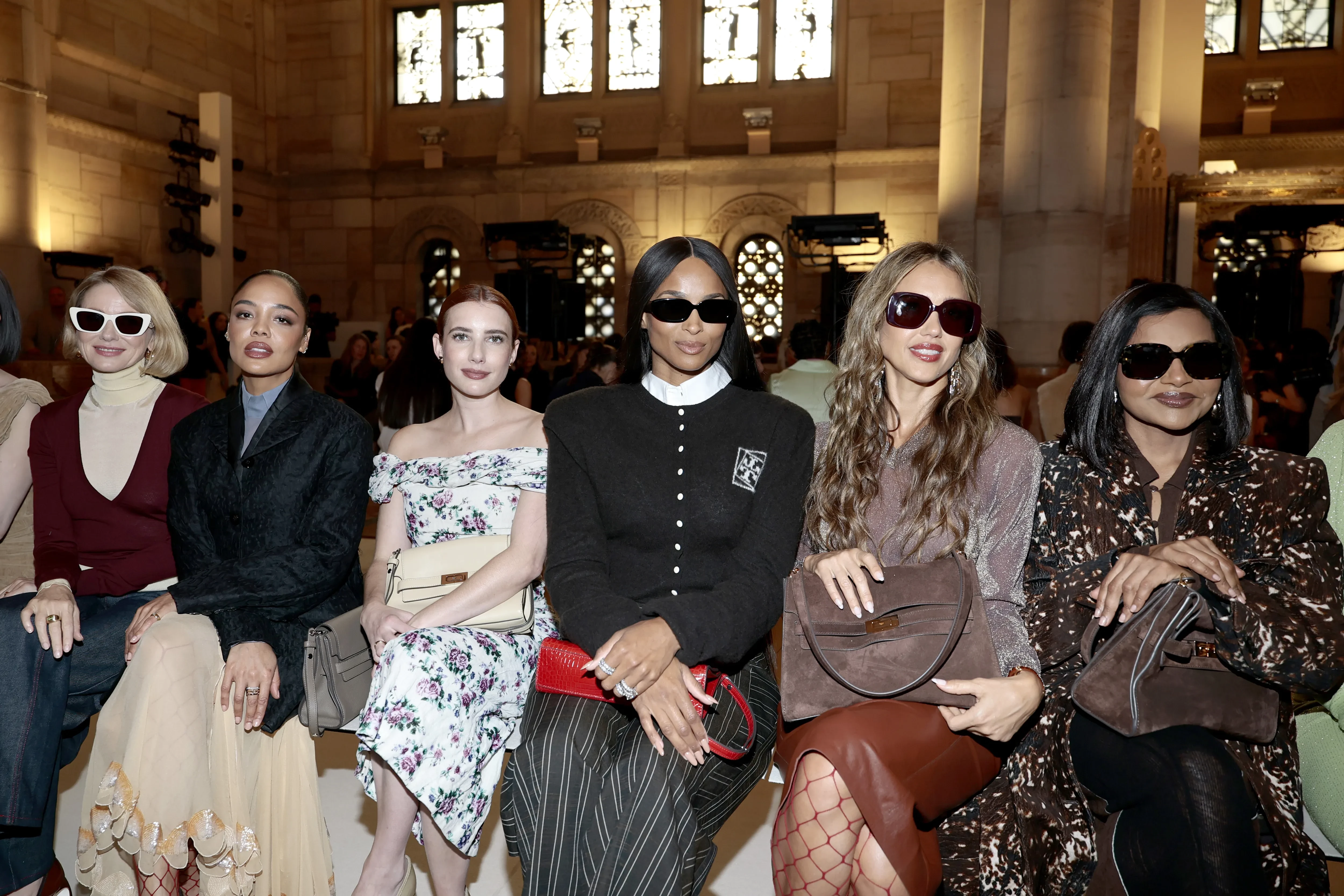 56-летняя Наоми Уоттс, сын которой ранее принял участие в Неделе моды, пришла на показ в джинсах, джемпере с водолазкой и солнцезащитных очках, а 44-летняя Джессика Альба позировала в прозрачной блузе с люрексом, кожаной юбке и колготках в сетку. 34-летняя Эмма Робертс, как и Анна Винтур, пришла в платье с цветочным принтом.
