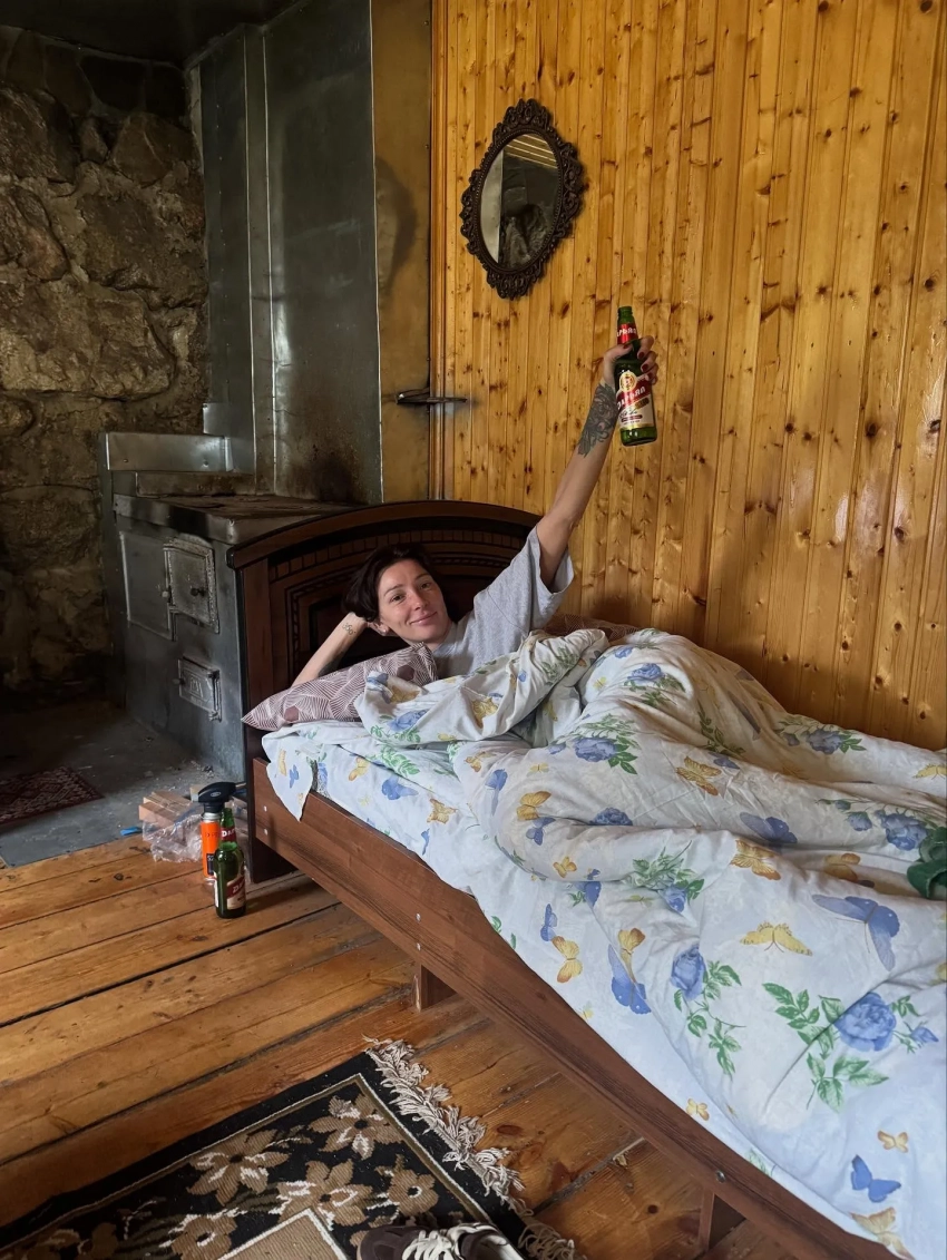 На фото Настя и Филипп позируют на фоне кавказских пейзажей и дурачатся на своей ферме. Пара, несмотря на плотный график, не забывает и об отдыхе для тела и души: Ивлеева показала кадры, где занимается йогой среди коз и пьёт пиво в постели.