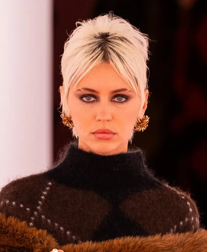 34-летняя Эмили Ратаковски пришла в брючном костюме, а 22-летняя бывшая невеста Ромео Бекэма Миа Реган в чёрном мини-платье и сапогах наблюдала за экс-женихом в первом ряду.