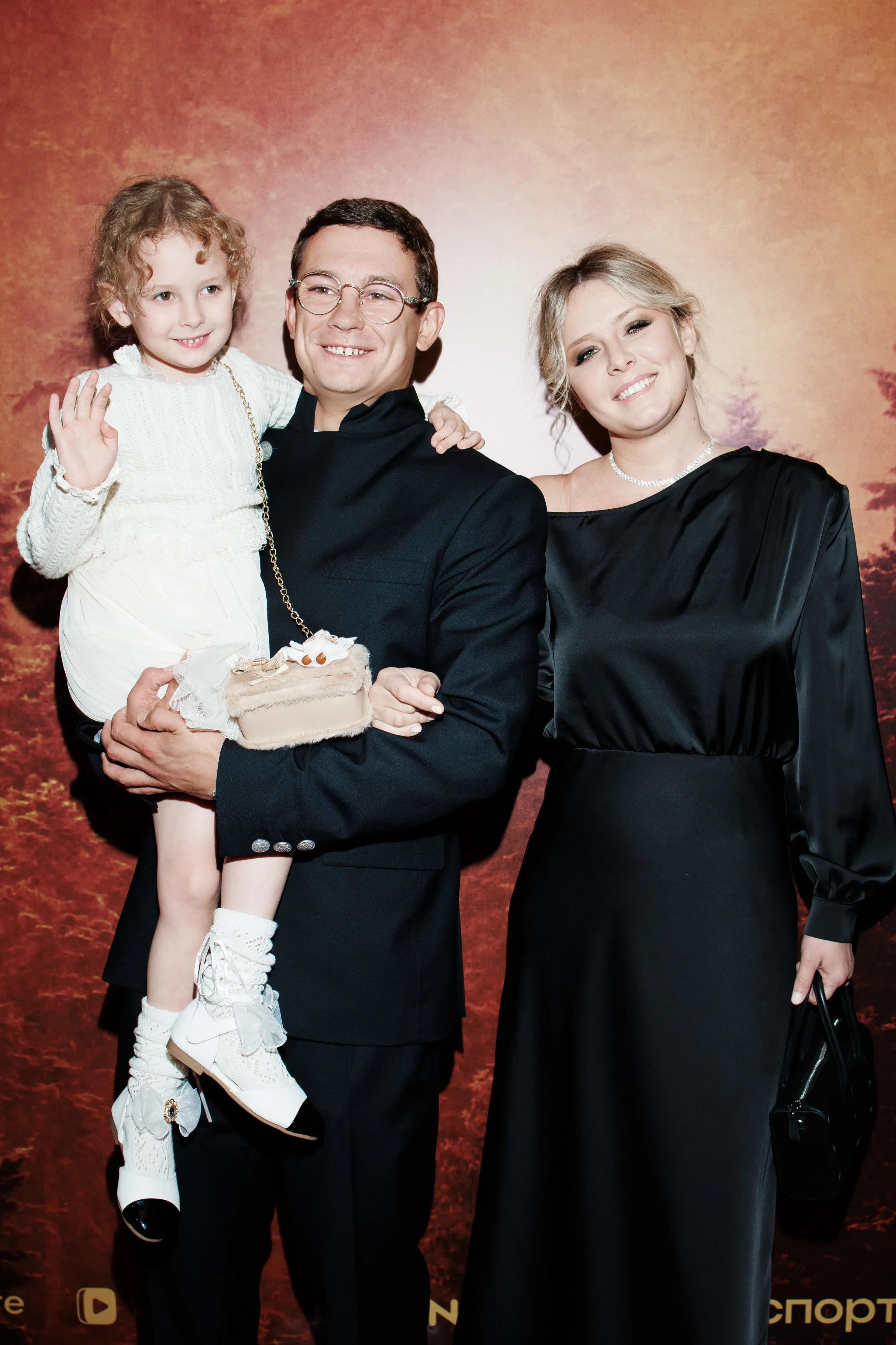 Константин и Софья ЭрнстСергей Безруков и Анна МатисонАлексей Воробьёв и Аида ГарифуллинаНикита Кологривый и Александрина Питиримова с дочерьюКсения Ермоленко и Павел ТабаковНикита Кологривый, который сыграл в фильме одну из главных ролей, вышел в свет с бывшей женой Александриной Питиримовой и дочерью Есенией. Пара рассталась ещё в 2023 году (якобы из-за романа актёра с Агатой Муцениеце), но официально развод так и не оформила. Они поженились в 2020-м после шести лет отношений, а в 21-м у них родилась дочь. В каких отношениях бывшие супруги сейчас — неизвестно.