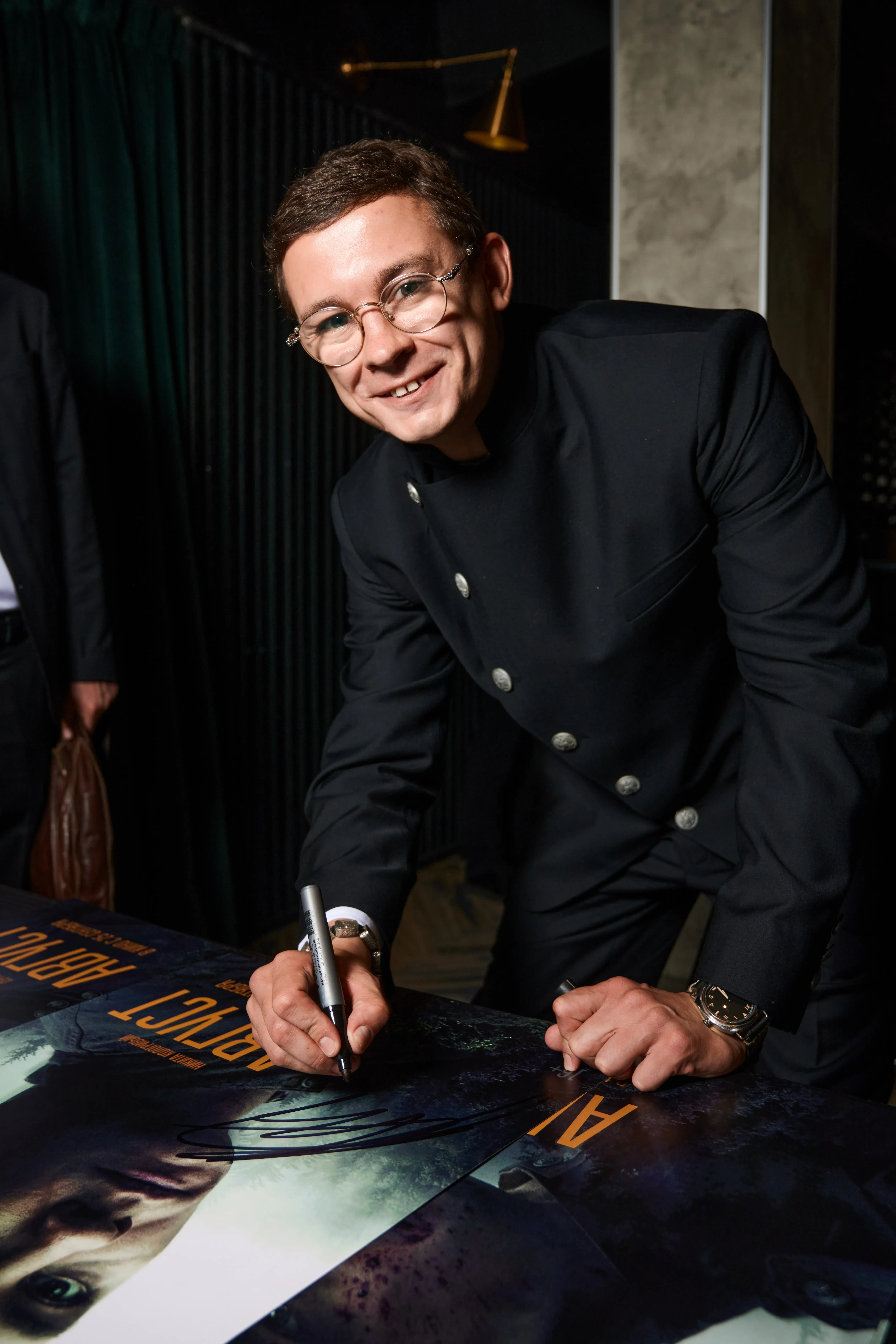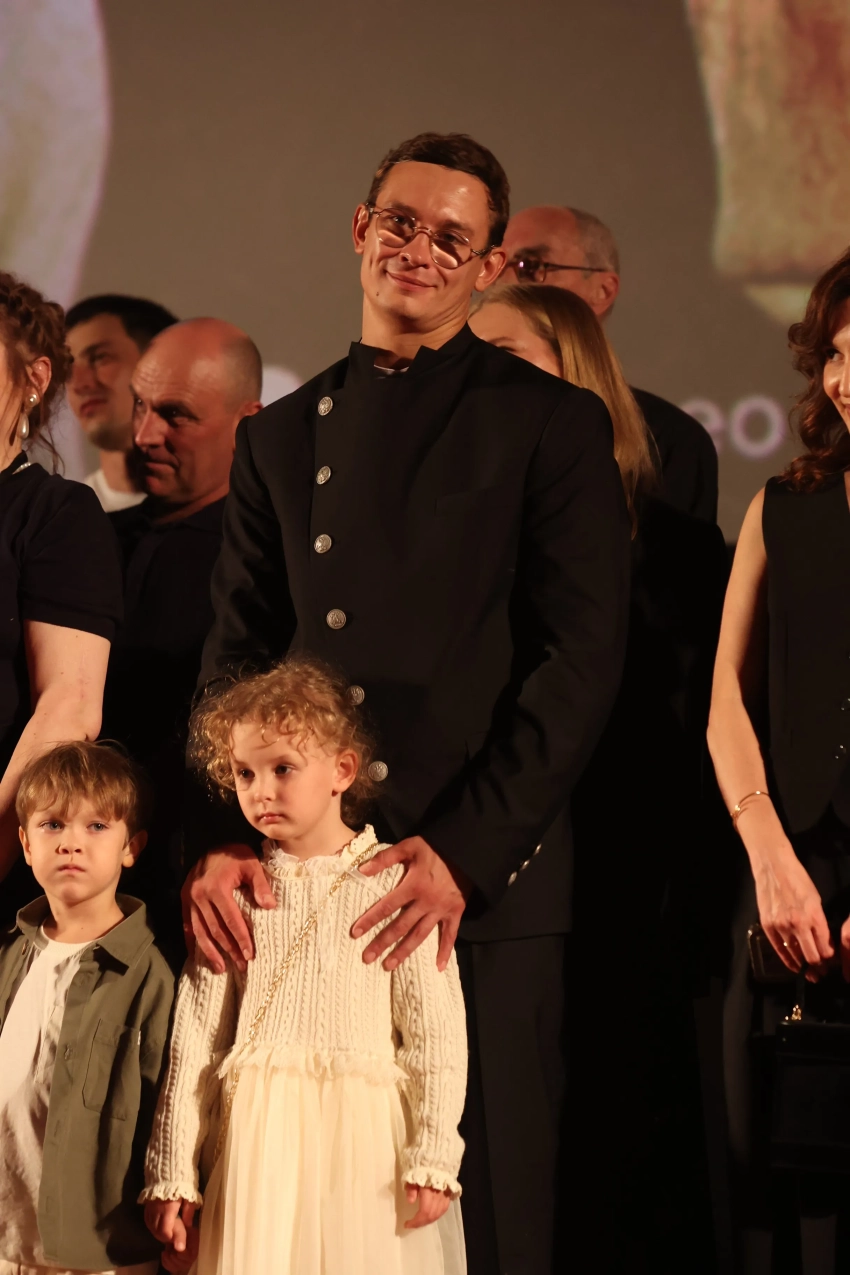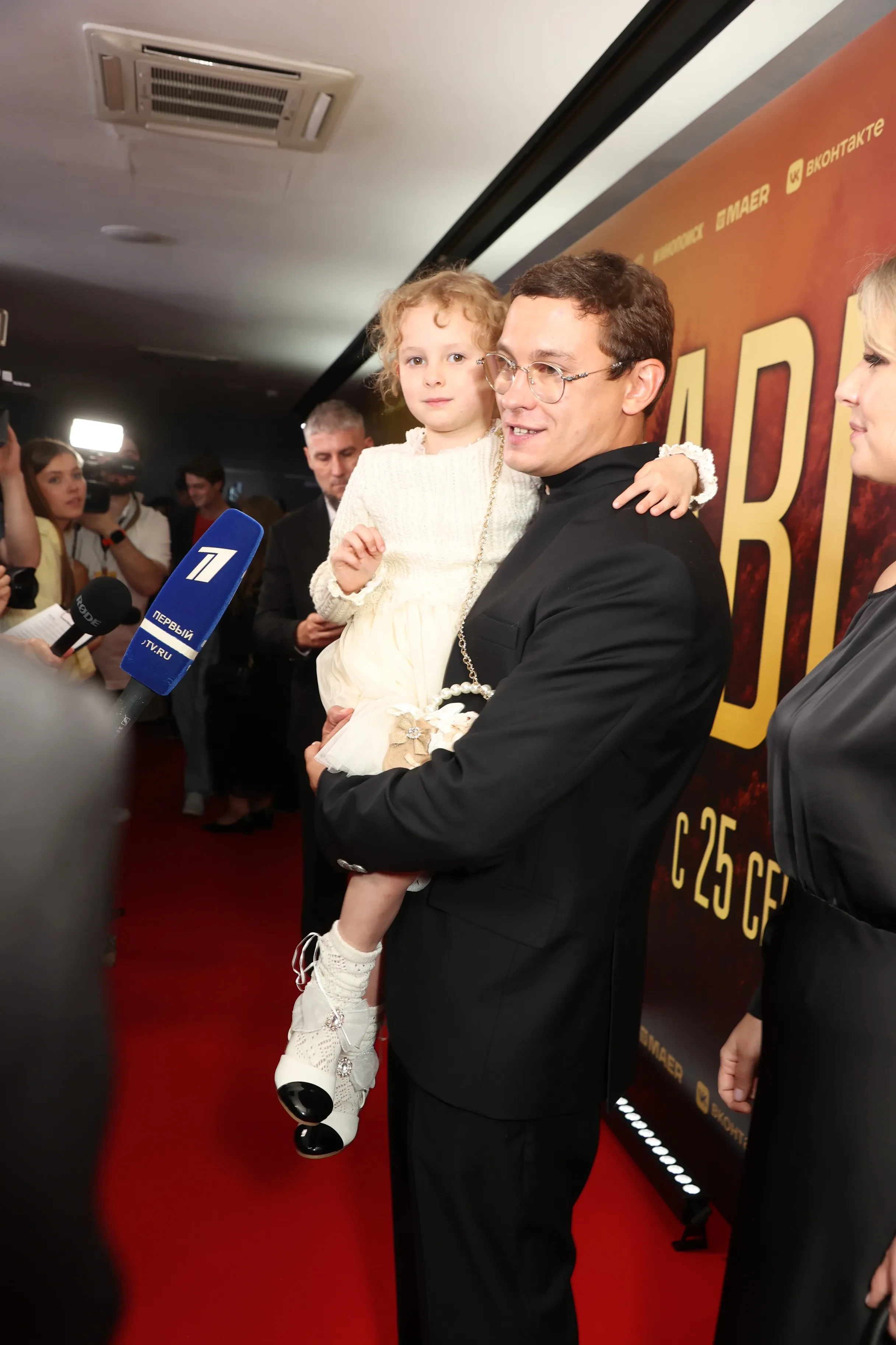 На красной дорожке семья позировала вместе. На вопросы журналистов Кологривый отвечал, держа дочь на руках. С ней же он вышел и на сцену представлять фильм.