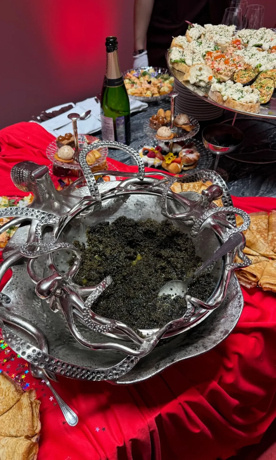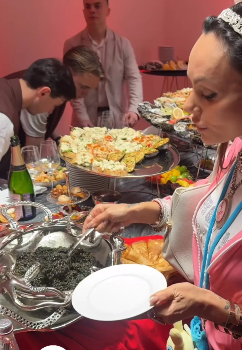 Ксения Собчак и ТиматиКсения Собчак и Ольга БузоваНа входе селебрити встречала хостес в винтажном платье Ксении Собчак от Dolce & Gabbana, в которое сама Собчак "больше не влезает", как она рассказала Ксении Соловьёвой. Гости вечеринки пришли в своих ярких образах из нулевых: Светлана Бондарчук надела облегающее платье Herve Leger, а Люся Чеботина и Елизавета Базыкина повторили выходы Ксении Собчак того времени. Внутри гостей ждал стол от ресторана Александра Раппопорта — с чёрной икрой, "как и в нулевые", блинами и шампанским. Банкет оценил Тимати: "Я за этим и пришёл".