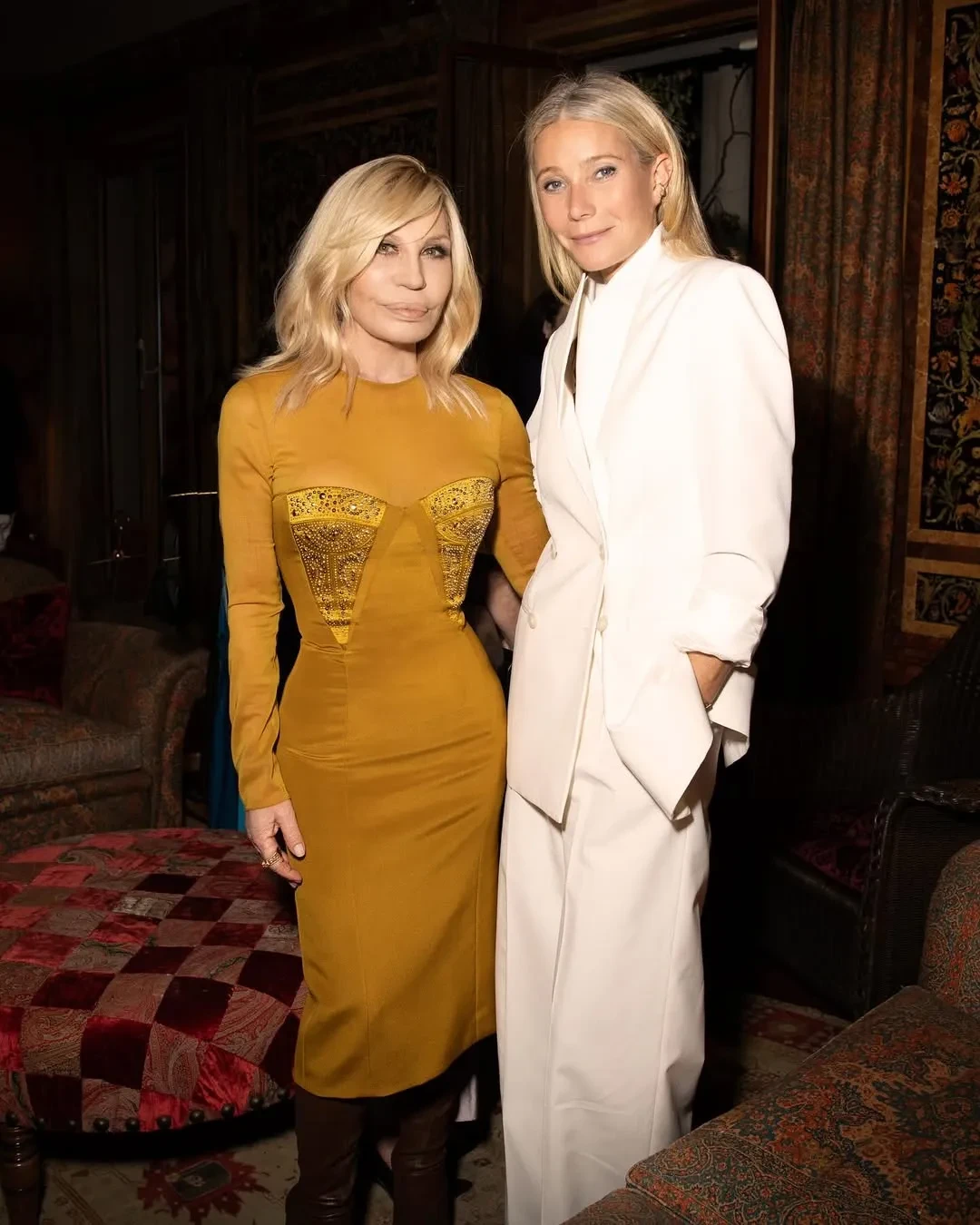 52-летняя голливудская актриса и основательница марки Goop Гвинет Пэлтроу появилась перед гостями в белом костюме, а 70-летняя Донателла Версаче позировала в жёлтом платье Versace и коричневых сапогах на каблуках.