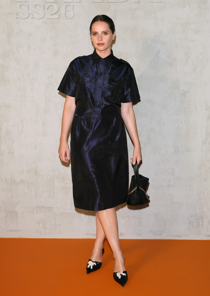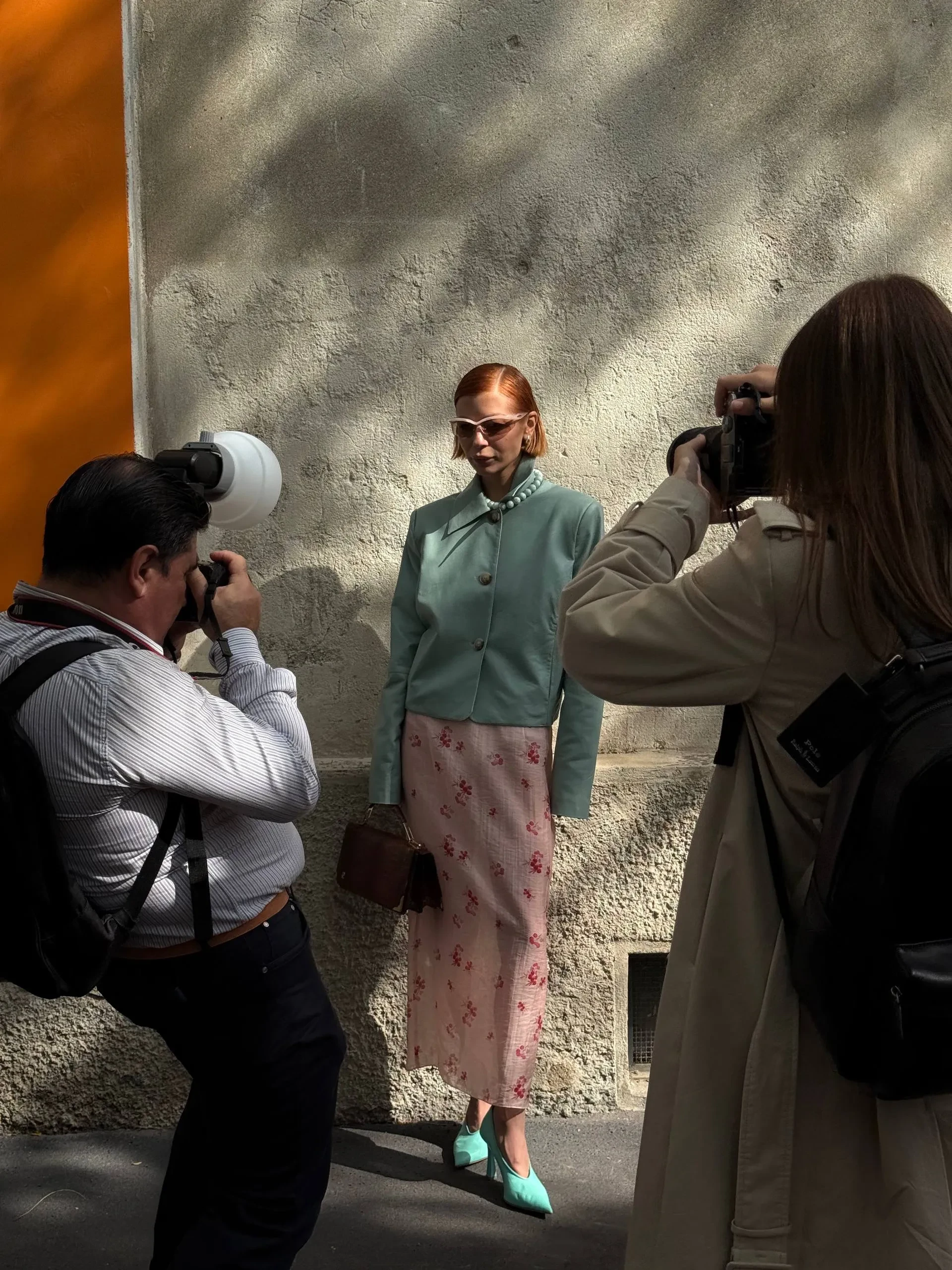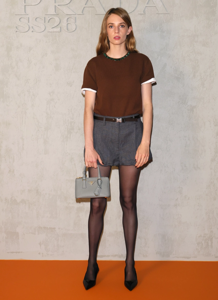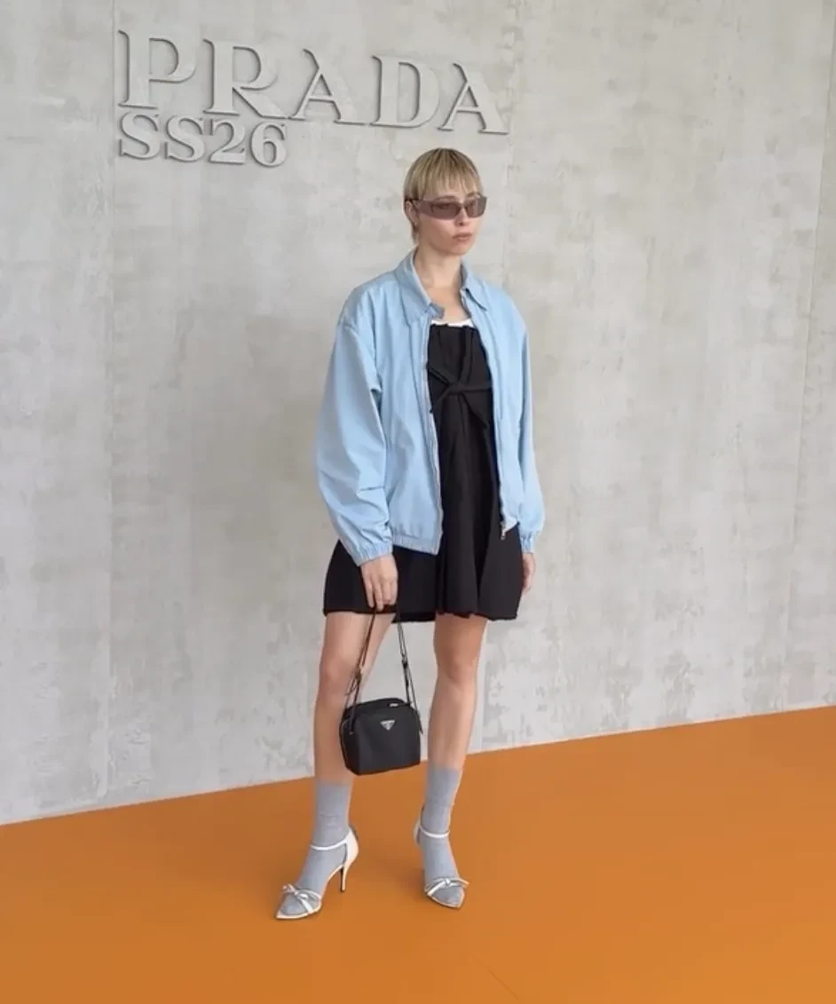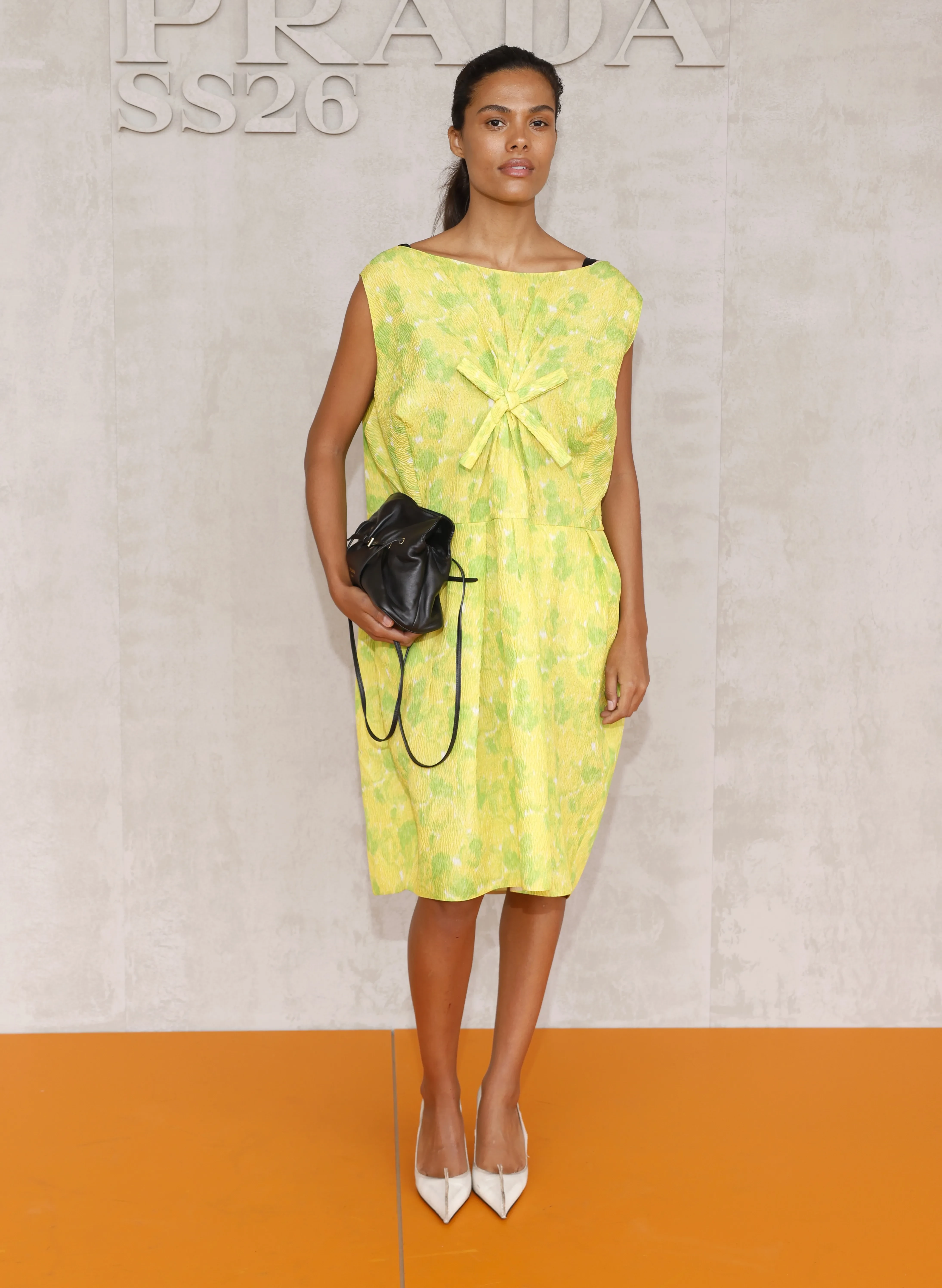 28-летняя экс-супруга Венсана Касселя Тина Кунаки пришла в зелёном платье из прошлой коллекции Prada, в котором недавно выходила в свет Даша Жукова. 31-летняя Кристина Романова — возлюбленная миллиардера Владислава Доронина — встретилась на шоу с подругой Еленой Перминовой. Модель и мать двоих дочерей от Доронина позировала в мини-юбке и блузе с декольте. В этом сезоне показ Prada посетили многие российские селебрити: Ольга Карпуть пришла в образе Барби, а блогер Диана Коркунова, которая недавно сходила на свидание с Post Malone, не пропустила шоу даже из-за травмы ноги.