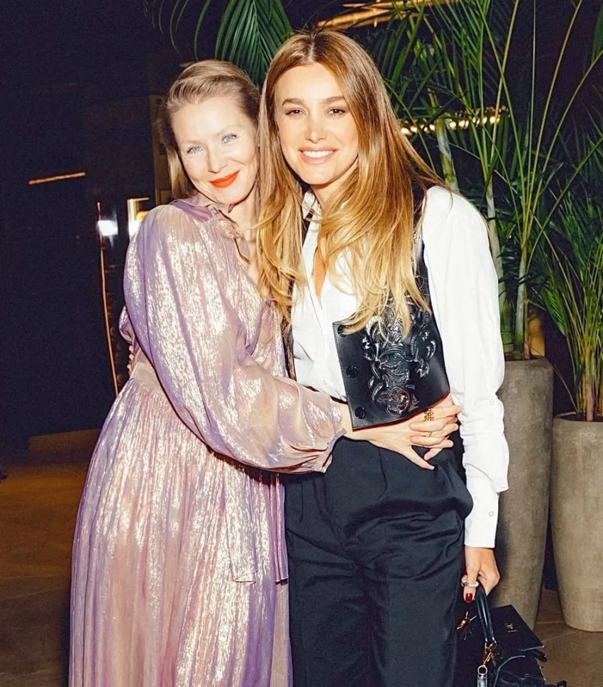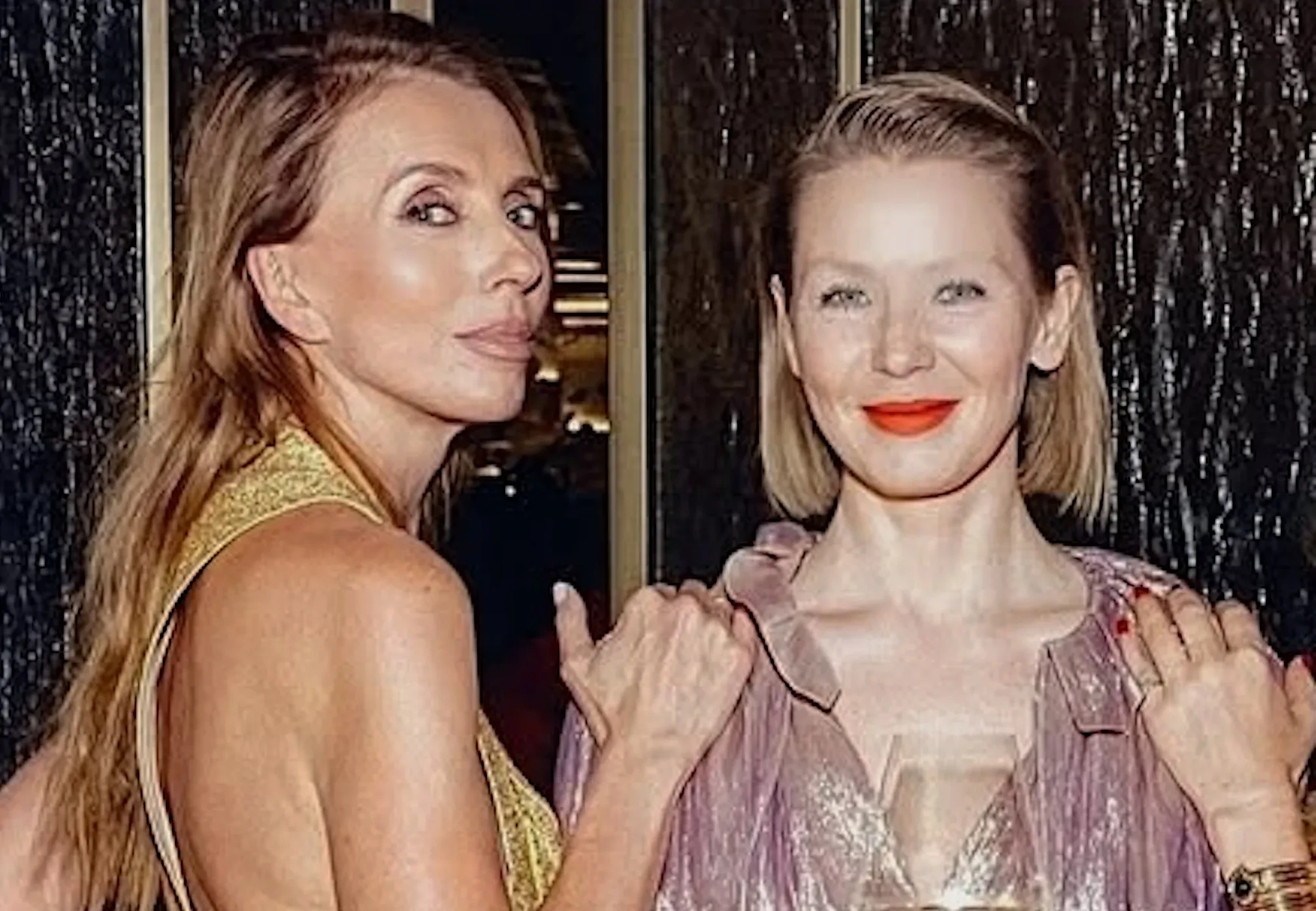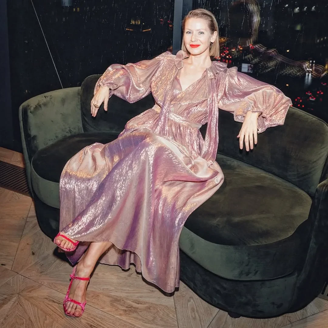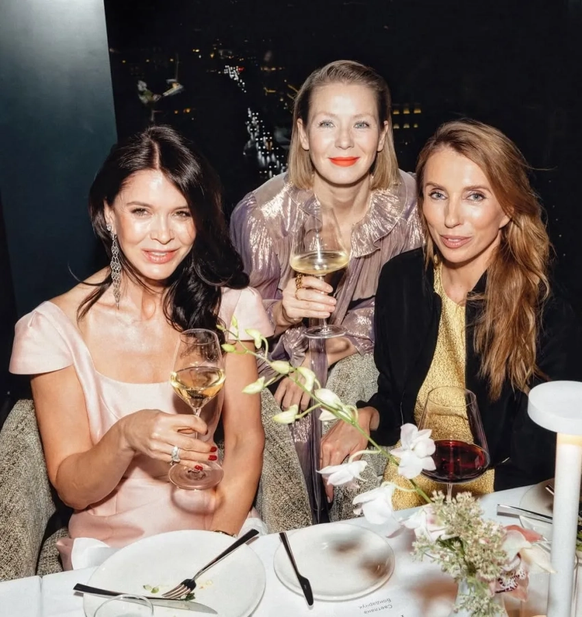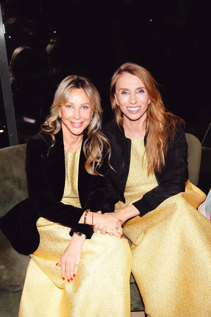 56-летняя Светлана Бондарчук и Кира Турчак пришли на ужин в одинаковых золотых платьях Vika Gazinskaya, а сама дизайнер выбрала блестящий наряд золотисто-лилового оттенка и дополнила образ красной помадой.