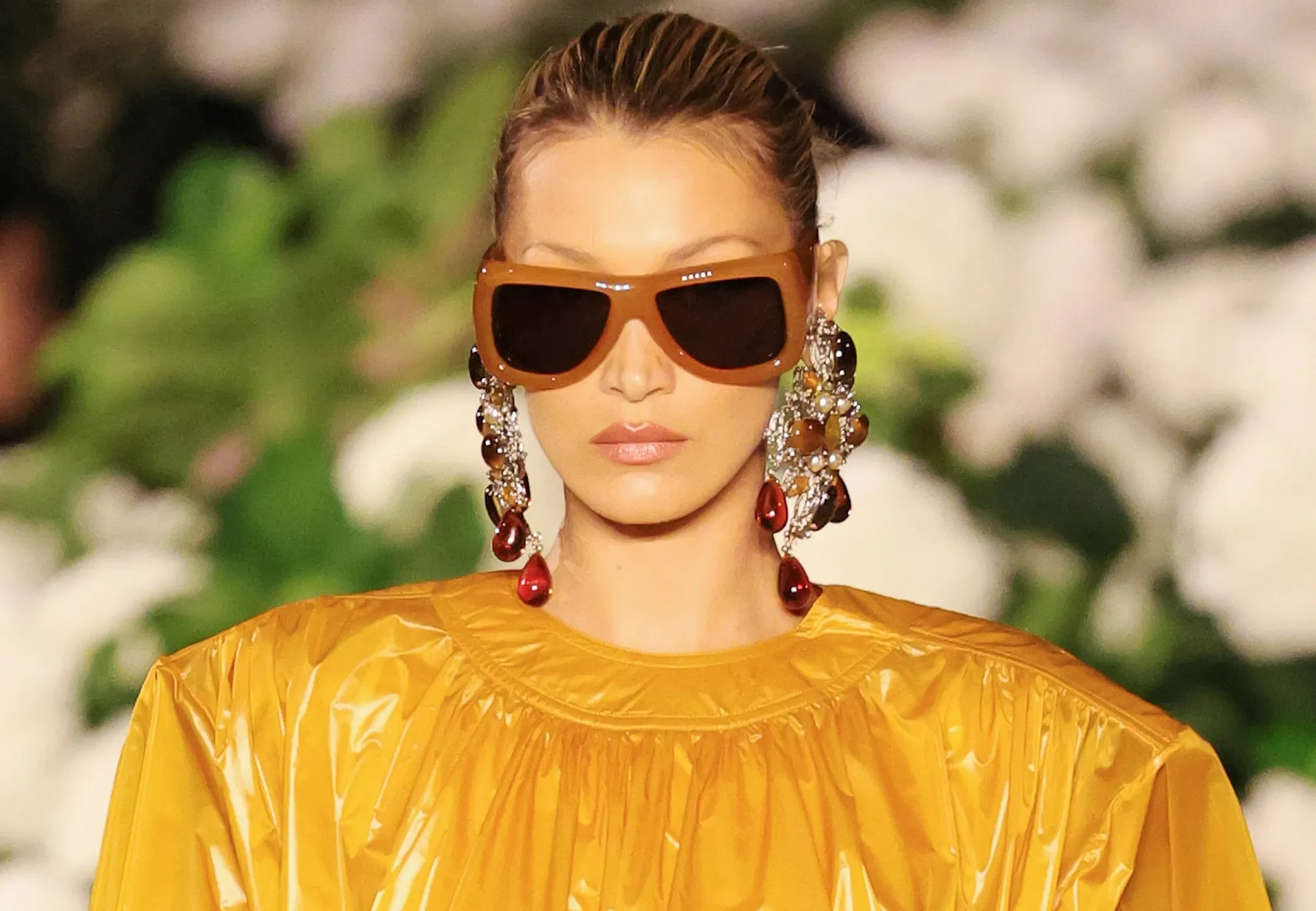 Хадид, которая недавно публиковала фото под капельницами, вышла на подиум в полупрозрачном платье бренда, массивных солнцезащитных очках и туфлях на высоких каблуках.