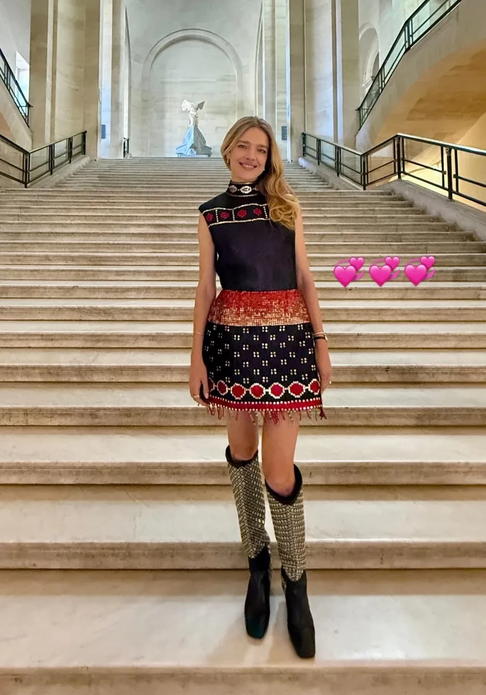 43-летняя супермодель, которая накануне вышла в свет с мужем-миллиардером Антуаном Арно, позировала перед шоу на фоне Лувра в мини-платье из пайеток и сапогах на каблуках. Кстати, супруг модели сопровождал её на показе. Он не вышел к фотографам, но выложил снимок Натальи в своих соцсетях и добавил эмодзи в виде сердца.