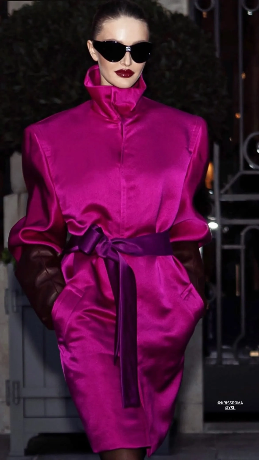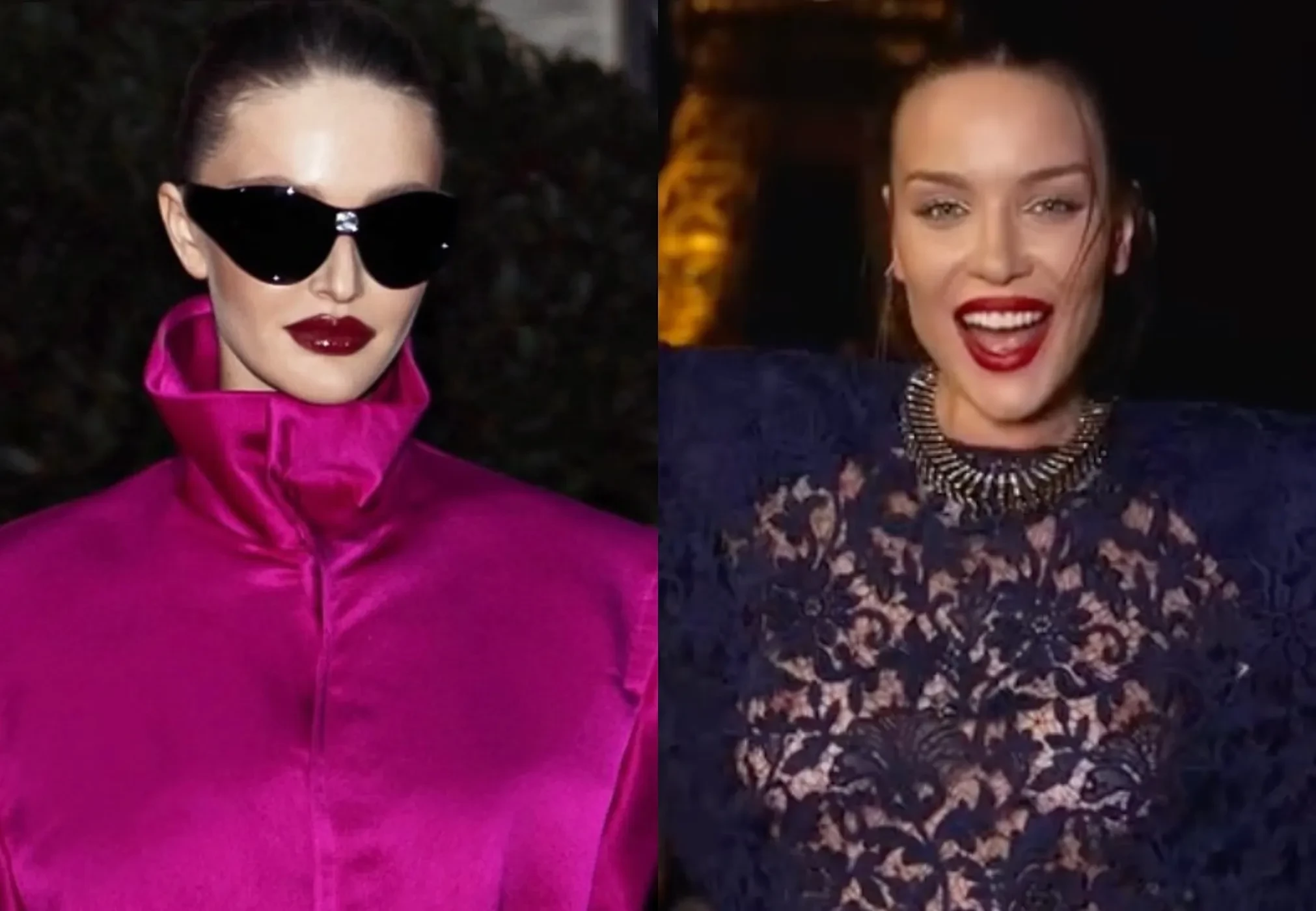 31-летняя Кристина пришла на показ в платье-тренче цвета фуксии и солнцезащитных очках. Она дополнила образ тёмной помадой и туфлями на каблуках. 37-летняя Дарья позировала фотографам в прозрачном платье из синего кружева, в котором в прошлом сезоне на подиум выходила Белла Хадид.