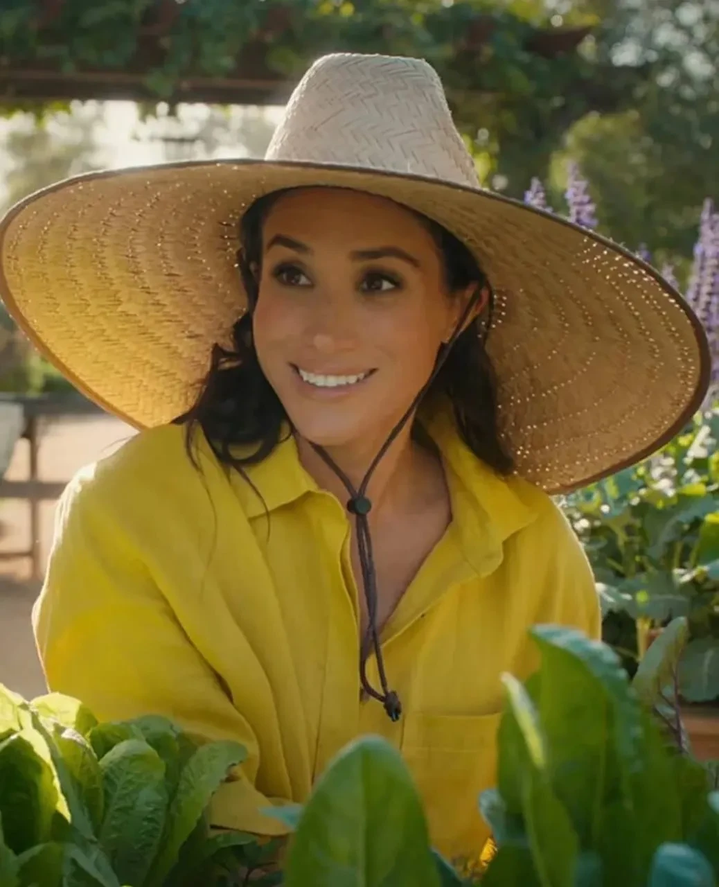 На снимке 44-летняя герцогиня Сассекская позирует в жёлтой рубашке и большой соломенной шляпе. При этом в сети многие посмеялись над шляпой Меган, сравнив её в том числе с шляпой Мелании Трамп во время её визита в Великобританию. В телеграм-канале The Crown многие обсудили такой выбор шляпы Меган: "Незнайка на Луне", "Как поганка", "Она правда изображает "дядюшку Тыкву" в качестве пиара?", "Как раз хлопок на плантации собирать".