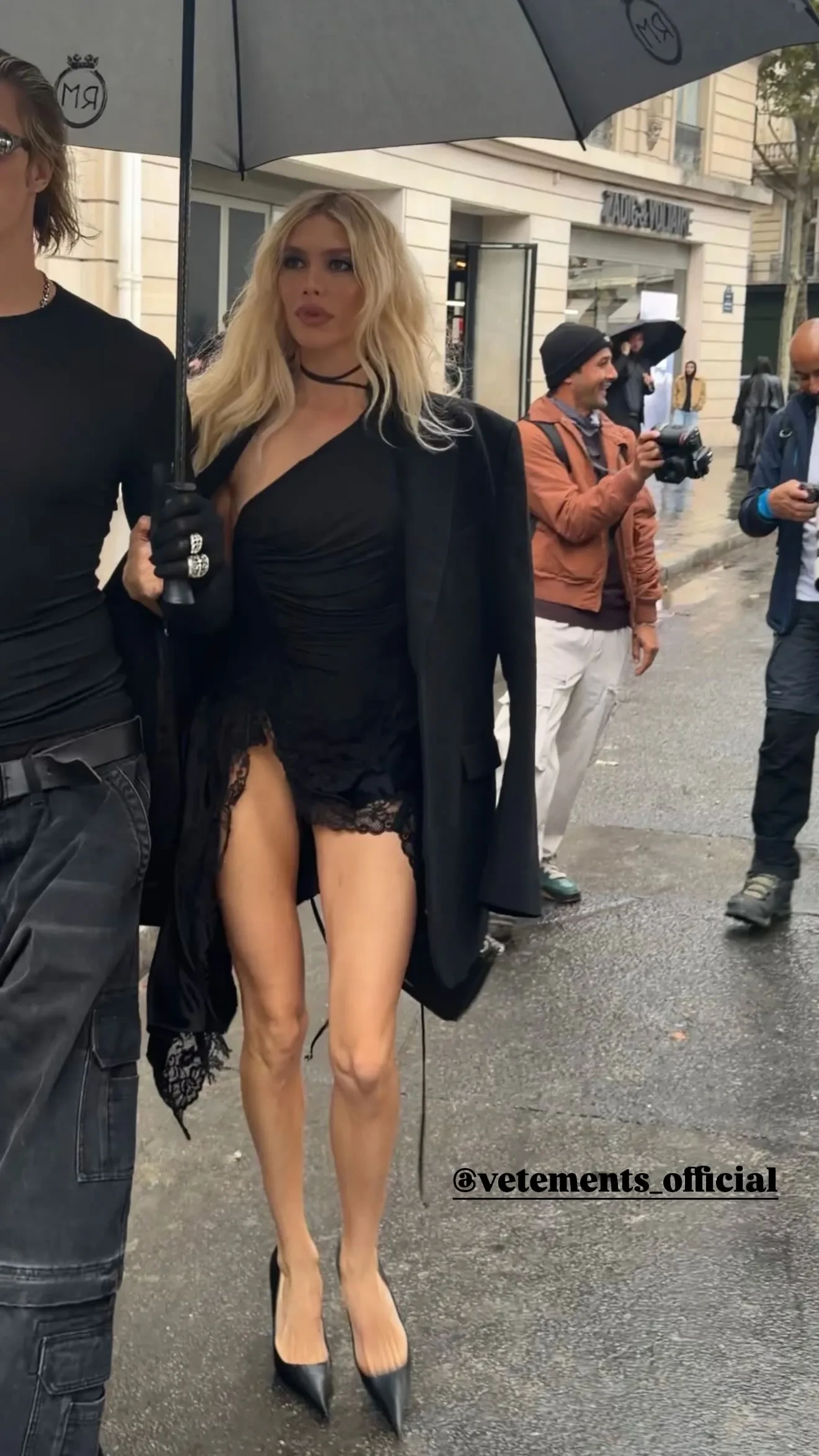 Неделя моды в Париже: Елена Перминова в мини-платье и Тарас Романов посетили показ Vetements