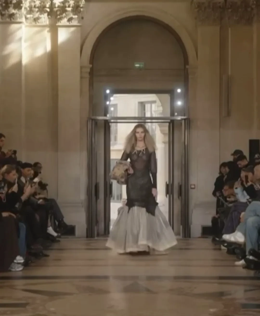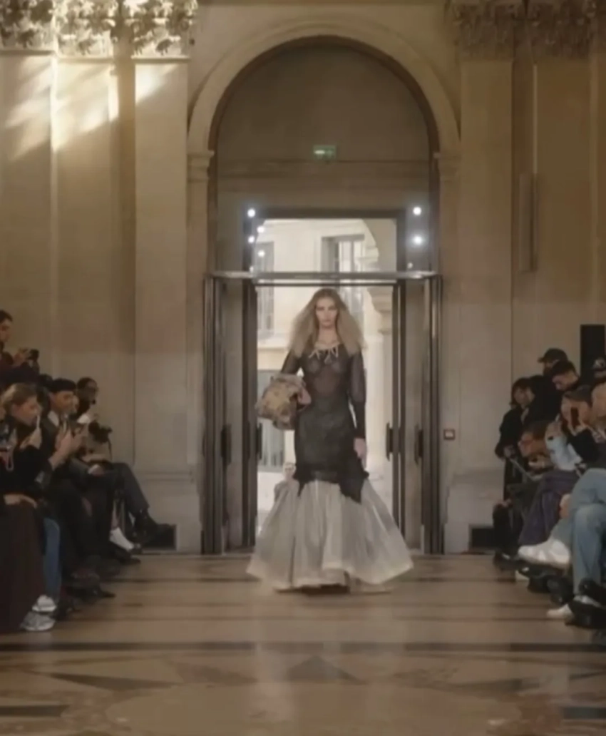 Вчера в рамках Недели моды в Париже состоялся показ новой весенне-летней коллекции Vivienne Westwood. Среди моделей, вышедших на подиум, была 26-летняя Алеся Кафельникова — она открывала шоу.