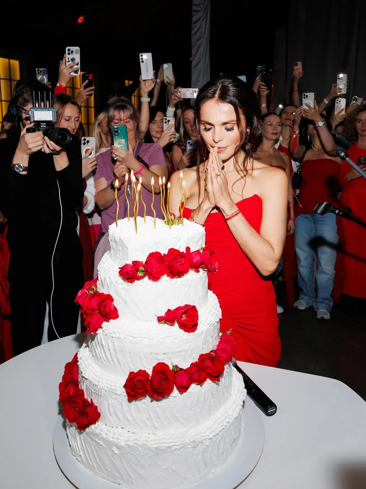 Именинница появилась на мероприятии в алом платье в пол с глубоким декольте. Гостей также попросили придерживаться красного дресс-кода. Программа длилась с полудня до позднего вечера: проводились мастер-классы, телесные и духовные практики, работала ярмарка. Кульминацией же вечера стала "практика сакрального звучания", которую провела сама Сати, после чего она задула свечи на многоярусном торте, украшенном живыми розами.