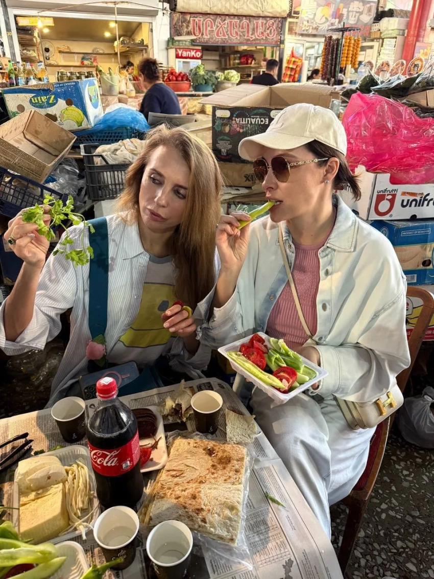 Жидковский и Алексеева прилетели в Ереван первыми и, дожидаясь остальных, успели побывать на кабаре-шоу Екатерины Варнавы Drama Queen. Когда компания собралась в полном составе, друзья устроили насыщенную туристическую программу: осмотрели достопримечательности и древние храмы, заглянули на колоритный рынок, попробовали традиционные армянские блюда и провели время на природе.