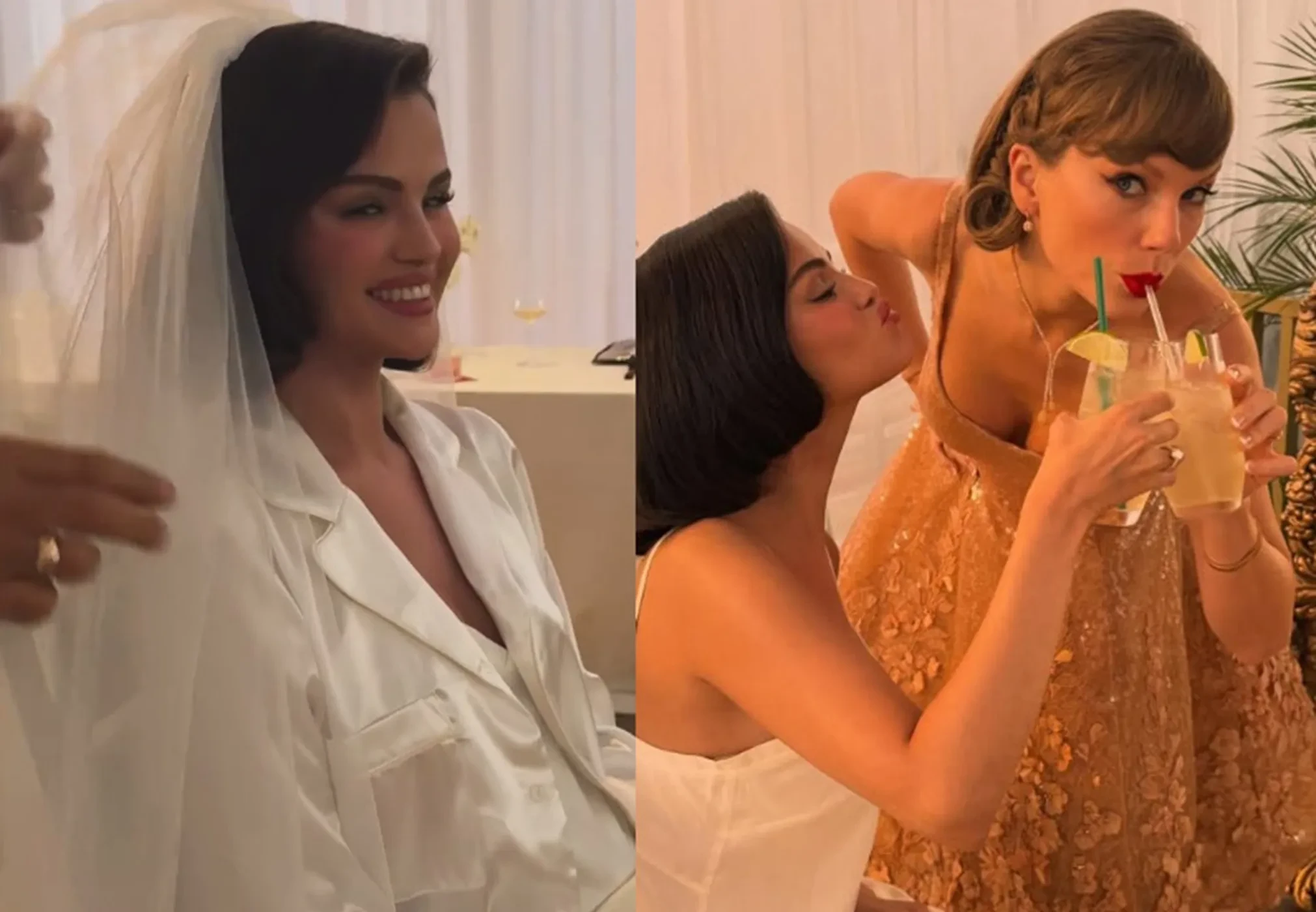 К видео Гомес добавила фотографии, на которых она и Свифт чокаются бокалами перед свадьбой и обнимаются на вечеринке после неё.