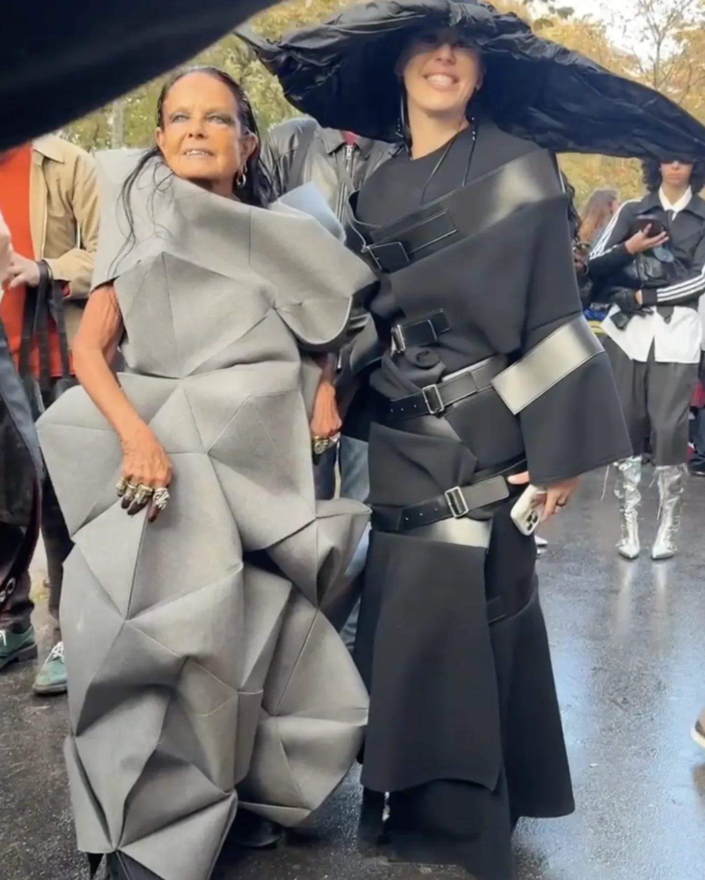 Собчак пришла на шоу японских брендов Comme des Garcons и Junya Watanabe в чёрном тренче с ремнями и объёмной шляпе. На одном из показов Ксения позировала с женой и музой дизайнера Рика Оуэнса Мишель Лами, а после снова встретилась с блогерами Сергеем Григорьевым-Апполоновым и Игорем Синяком. Также в рамках Недели моды Собчак посетила показ Valentino, куда пришла в брюках с леопардовым принтом и массивных солнцезащитных очках.