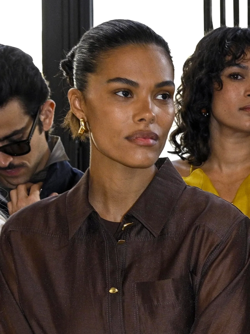 28-летняя бывшая жена Венсана Касселя Тина Кунаки пришла на показ в коричневом платье-рубашке в пол, а её подруга, 39-летняя экс-возлюбленная миллиардера Александра Лебедева Елена Перминова, позировала в мини-платье с рюшами и кружевом и кожаных ботфортах.