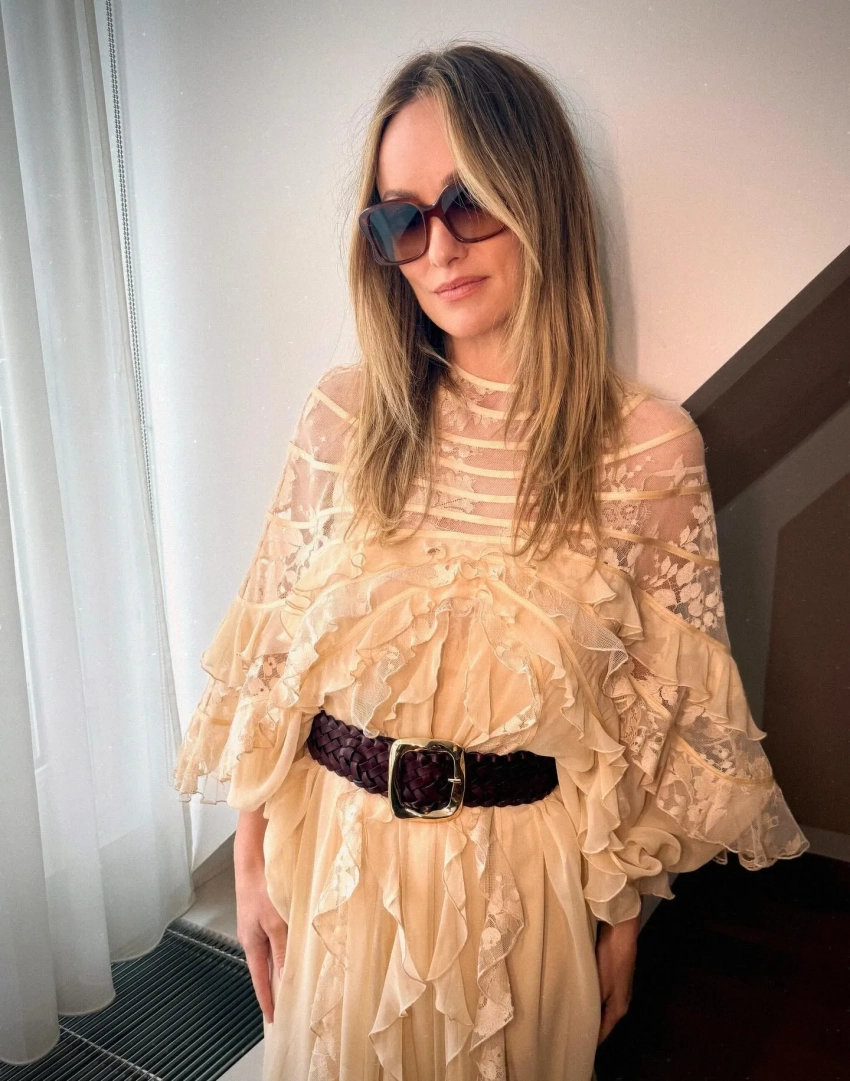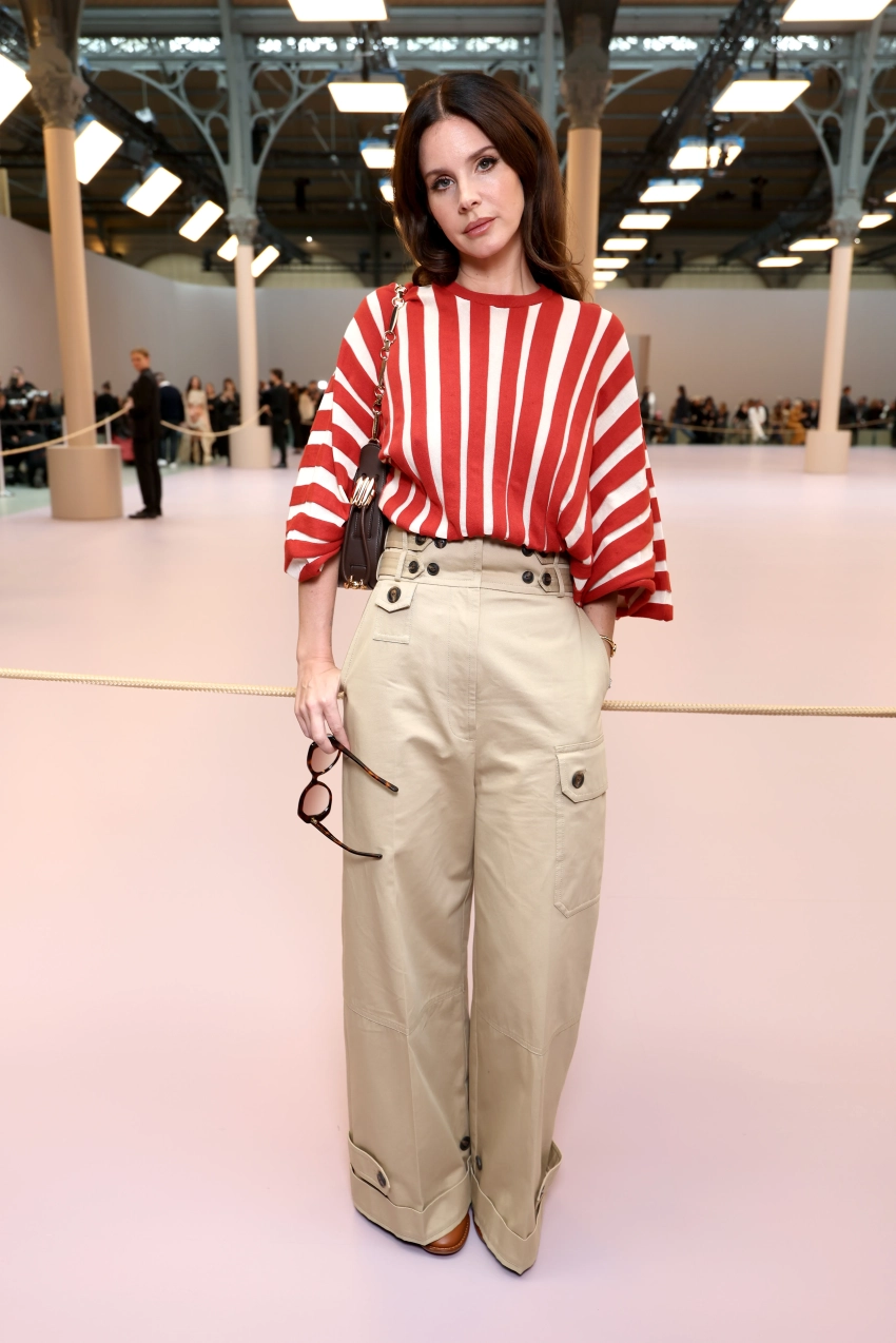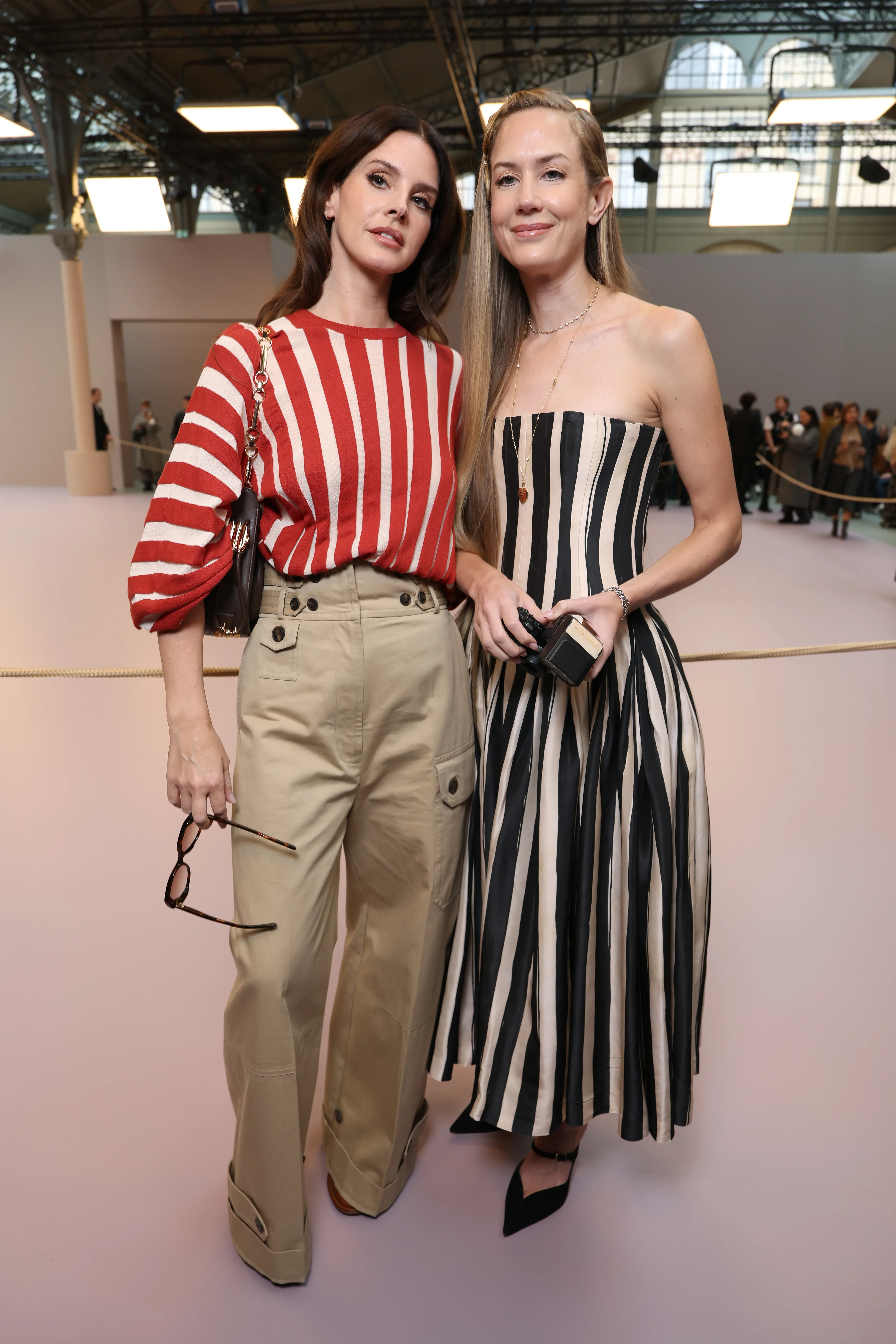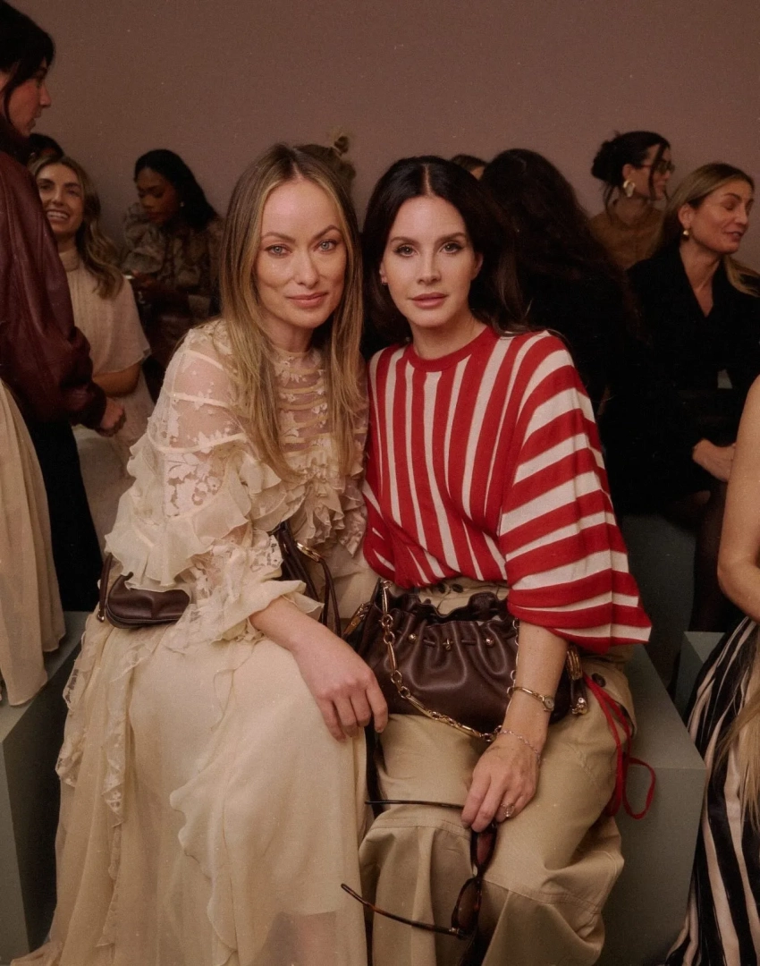 40-летняя Лана Дель Рей, которая накануне посетила показ Valentino вместе с мужем Джереми Дюффреном, выбрала для выхода в свет футболку с удлинёнными рукавами в красную полоску, песочные брюки с высокой талией и коричневые ботинки. Её 37-летняя сестра Кэролайн появилась в корсетном платье в чёрную полоску и дополнила образ остроносыми туфлями на каблуке. Оливия Уайлд блистала в романтичном кремовом платье с рюшами. Свой образ 41-летняя актриса завершила босоножками, широким плетёным ремнём, солнцезащитными очками и небольшой сумочкой.