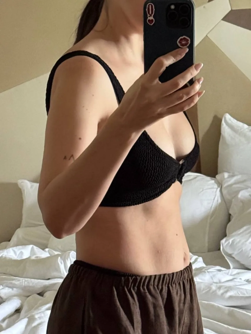 В своём телеграм-канале она опубликовала снимок своего живота. "На грудном вскармливании просто отвратительно стоит вес. Но есть два небольших плюса, которых никогда у меня не было и после грудного вскармливания, наверное, не будет", — написала 35-летняя блогерша, намекнув, что у неё увеличилась грудь.