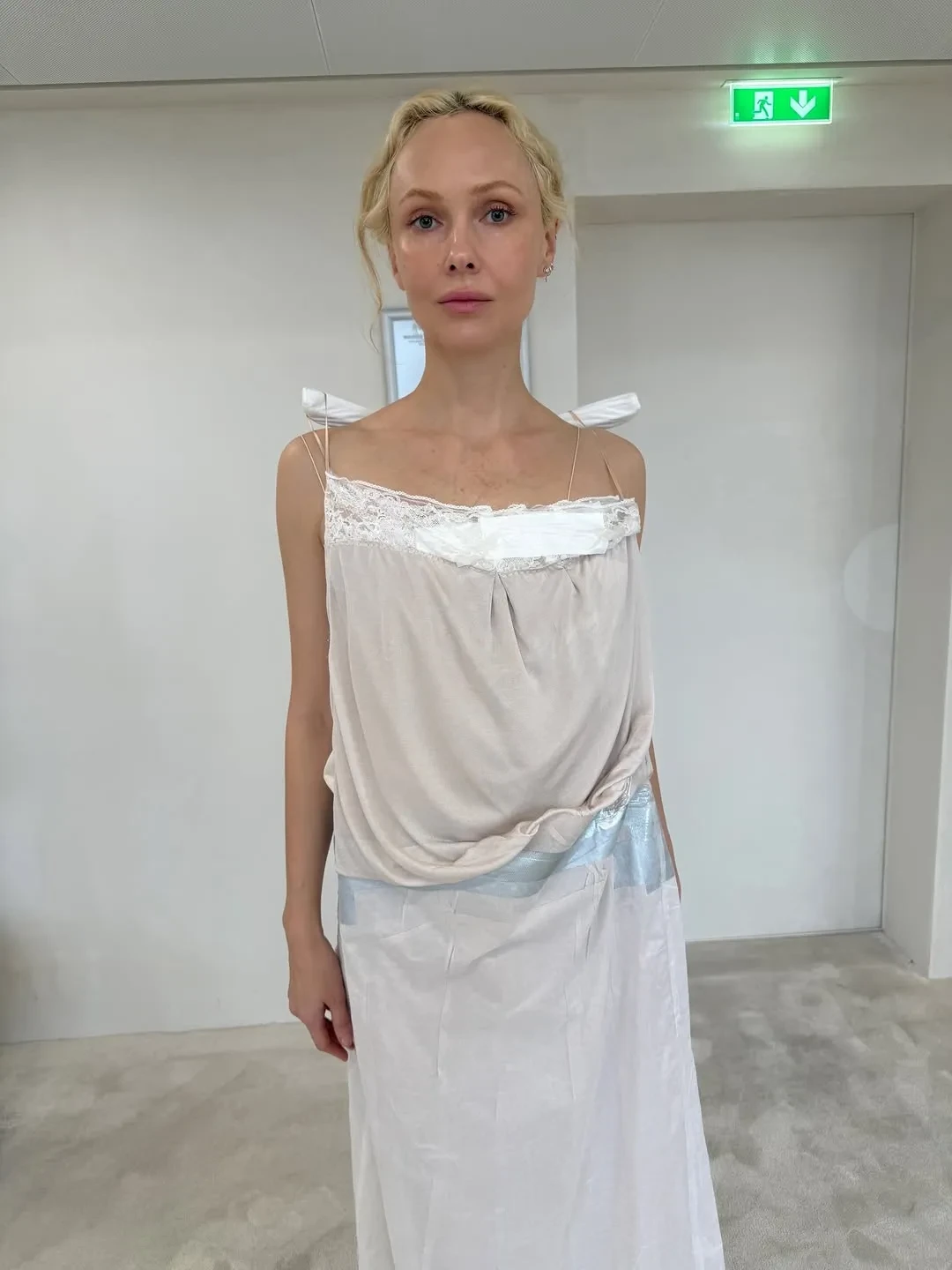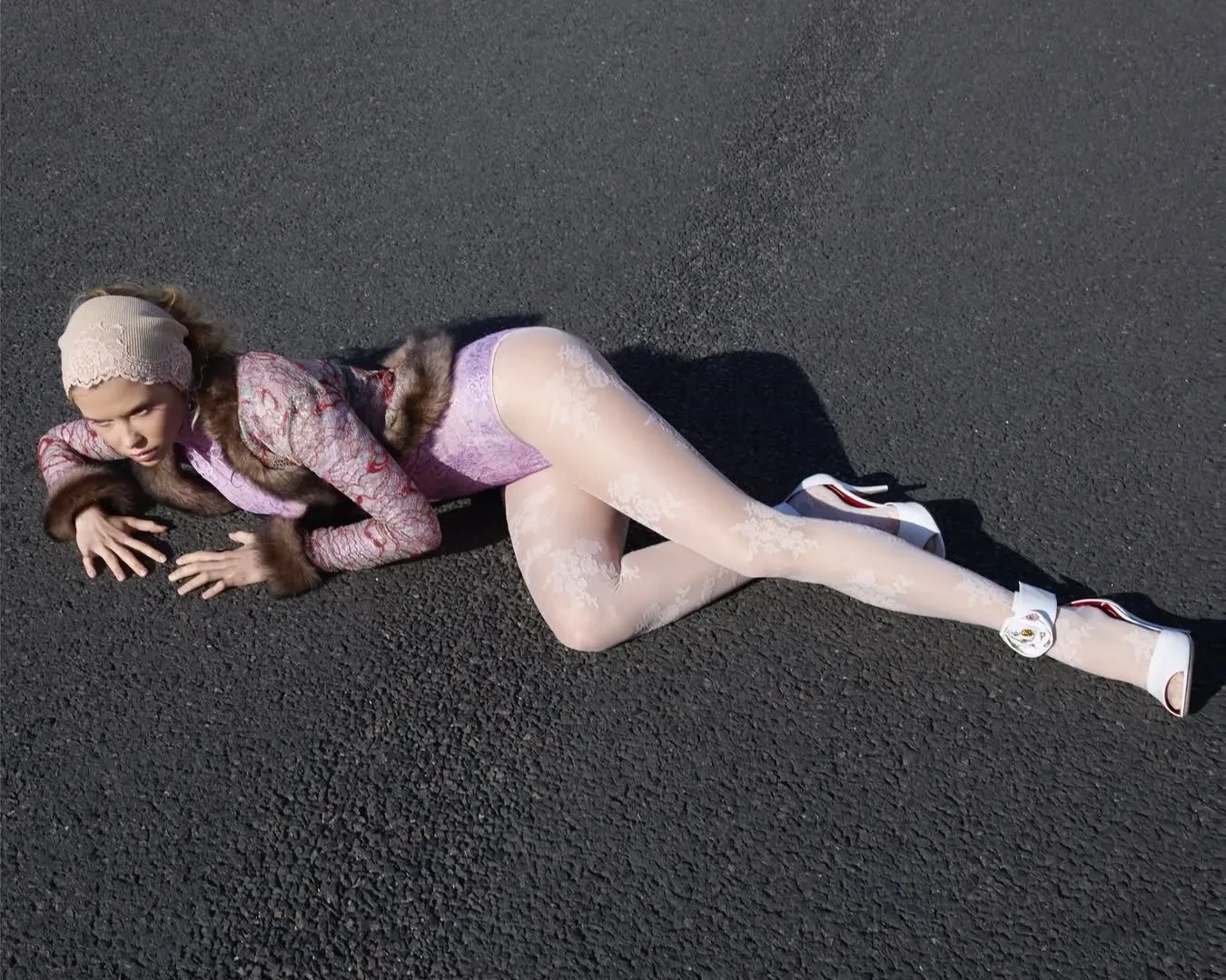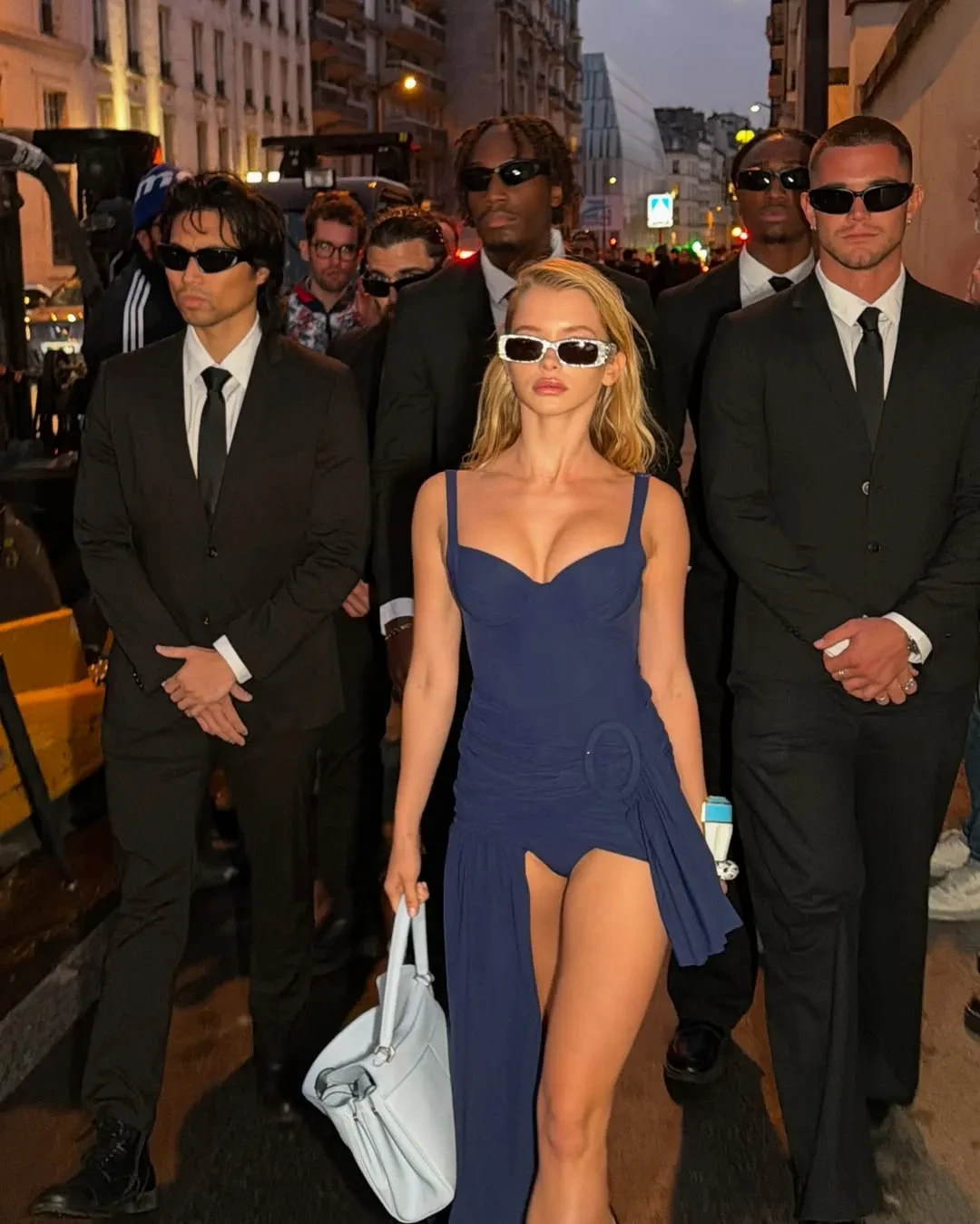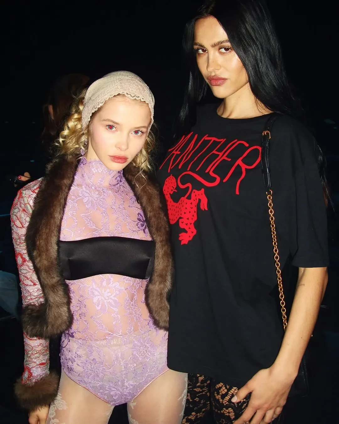 Ещё одна известная блогерша Алла Брулетова креативно подошла к своему образу для показа Balenciaga. Туда она пришла в компании "охранников", а на шоу Valentino Алла пришла в кружевных колготках и боди и встретилась с топ-моделью Амелией Грей.