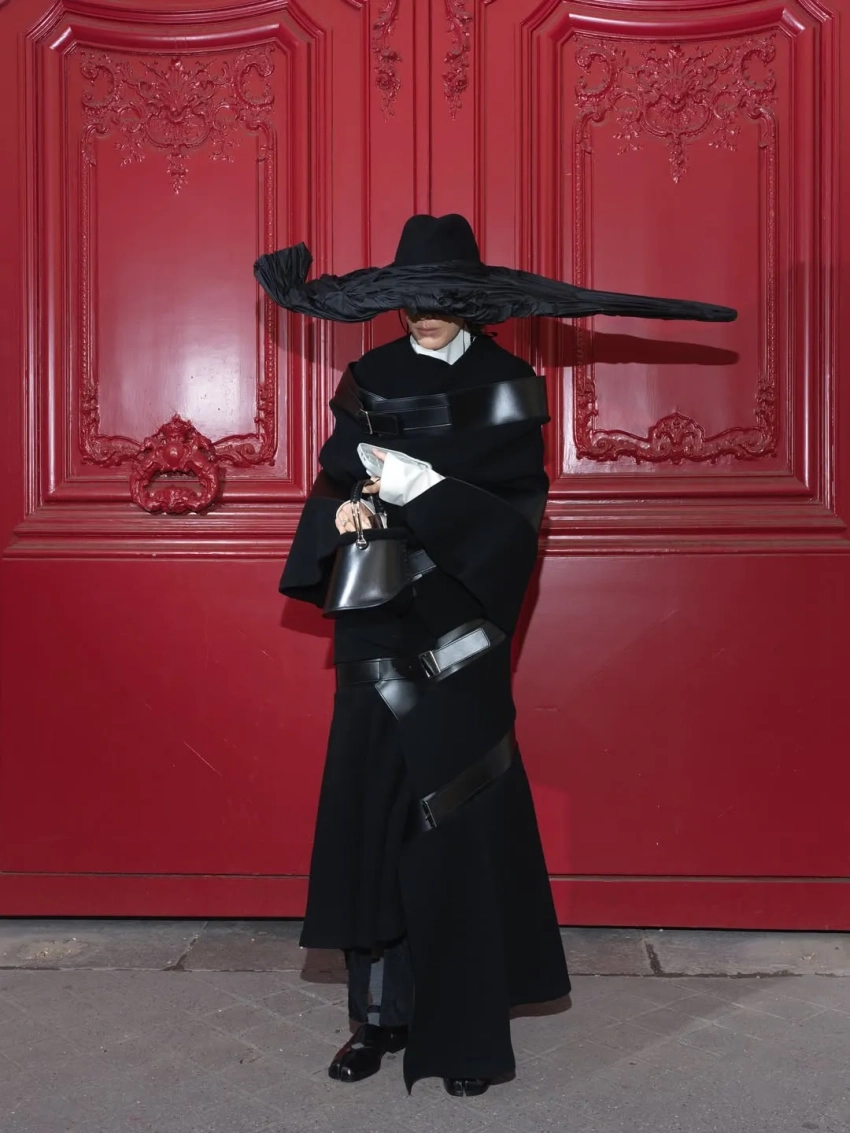 Ксения Собчак в этом сезоне посетила несчётное количество показов в самых неоднозначных нарядах. Последними образами ведущей были: бомбер с галстуком Schiaparelli из волос и брюками-юбкой Bottega Veneta, в которых она пришла на показ Vetements, и платье со шляпой "ведьмы" Comme des Garcons.