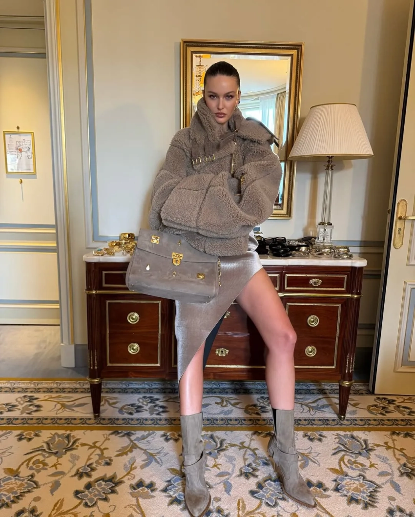 Тем временем Вера Брежнева тоже блистала на Неделе моды. Помимо ивента Messika, 43-летняя певица сходила на показ Isabel Marant, а Екатерина Мухина, которая редко показывает свои образы с Недель моды, оказалась практически незамеченной на вечере Business of Fashion, куда пришла в массивной чёрной меховой шапке, напоминающей никаб.