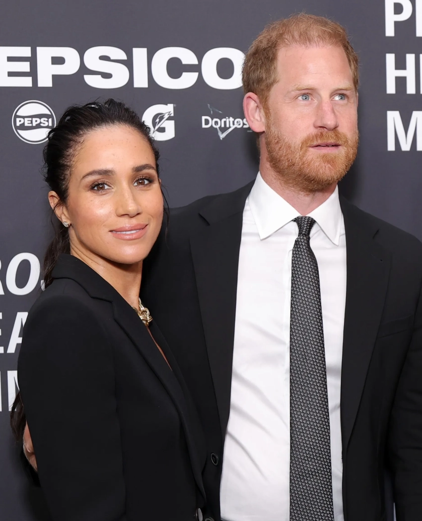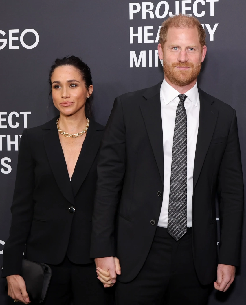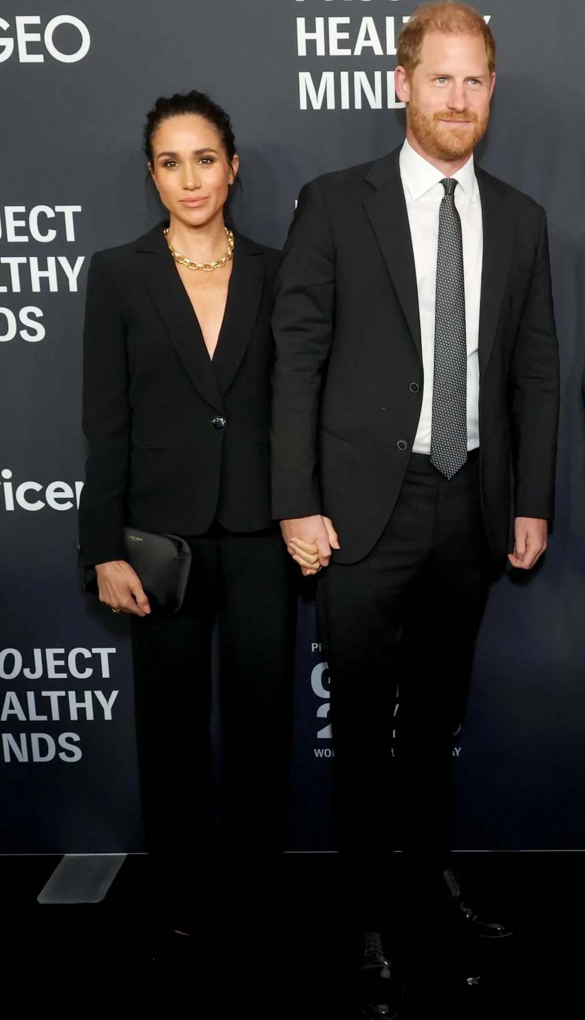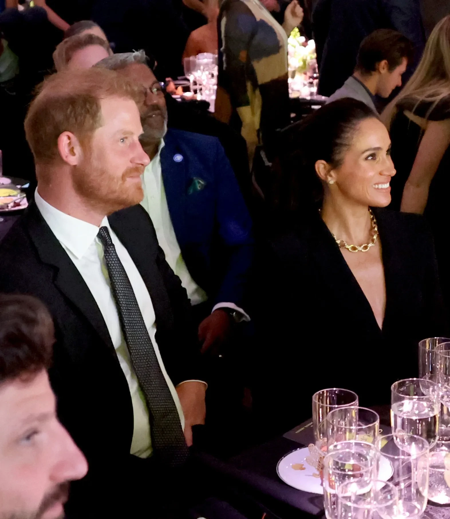 44-летняя герцогиня Сассекская позировала на дорожке в чёрном жакете, надетом на голое тело, и массивном золотом колье-цепи, а 41-летний принц Гарри надел костюм с галстуком. Меган и Гарри сидели в зрительном зале вместе с другими гостями, а также вышли на сцену, чтобы принять награду в номинации "Гуманитарные деятели года".