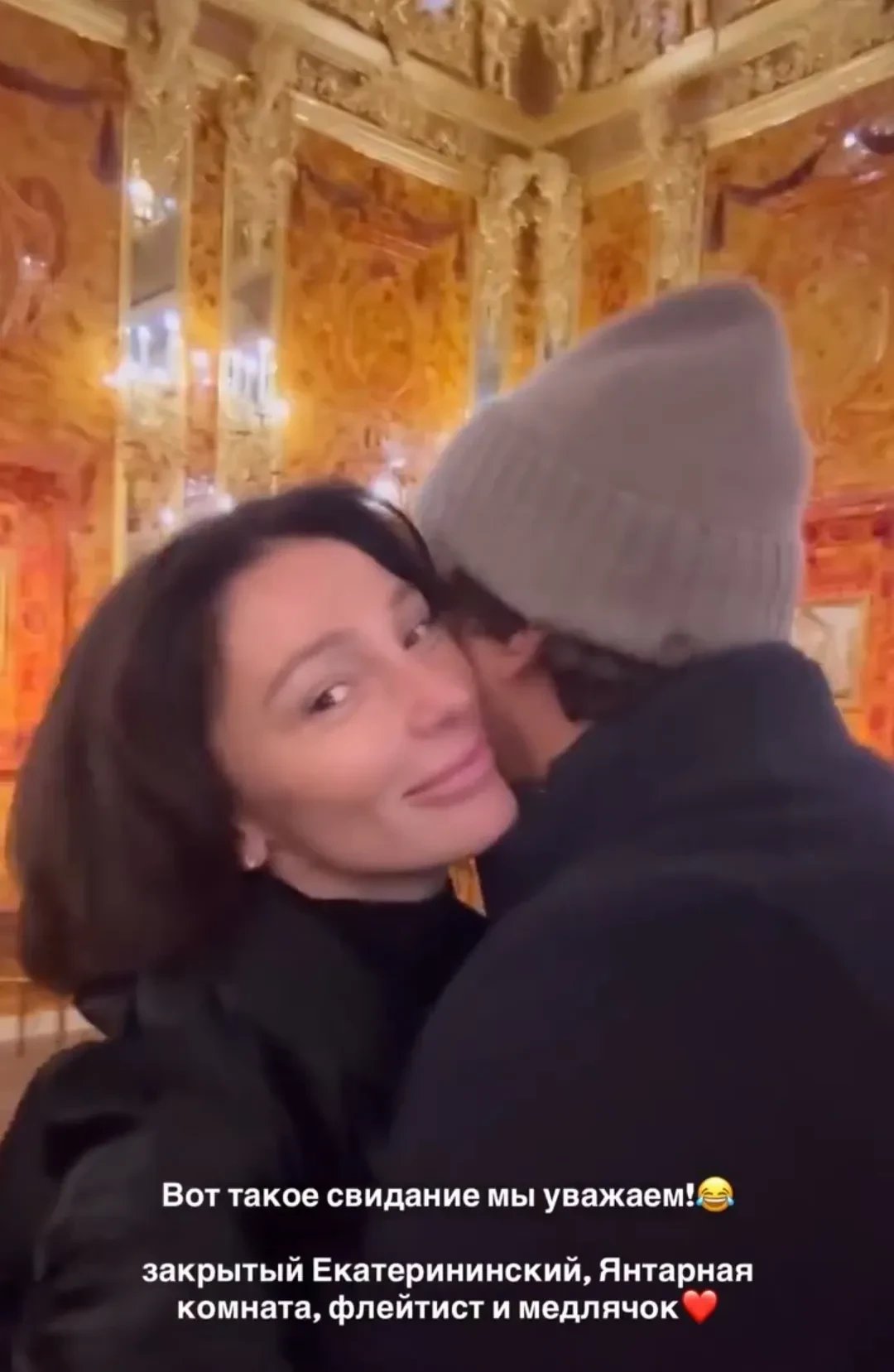Ивлеева опубликовала видео, в котором можно увидеть, как она танцует медленный танец с возлюбленным в Янтарной комнате под аккомпанемент флейты. “Вот такое свидание мы уважаем! Закрытый Екатерининский, Янтарная комната, флейтист и медлячок”, — подписала ролик Настя. Также она показала, какие цветы подарил ей супруг.