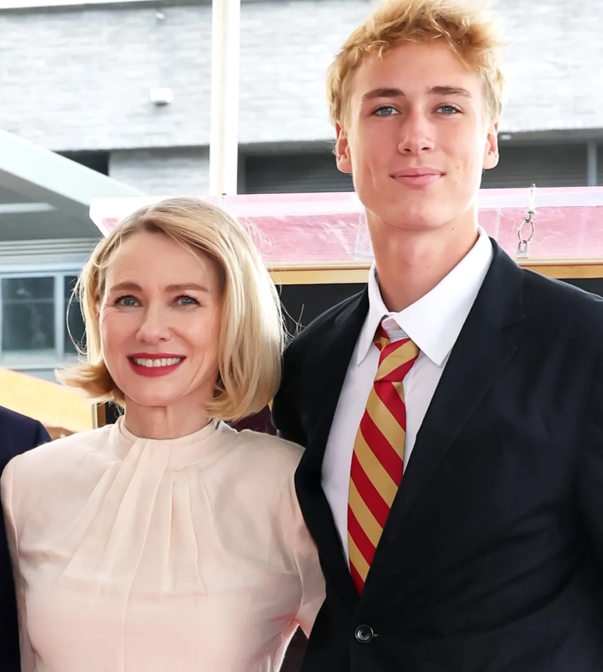 На торжественной церемонии Наоми появилась в светлом платье с ремнём и чёрных босоножках, дополнив образ красной помадой. 18-летний сын актрисы позировал рядом в костюме с галстуком, а её младшего ребёнка, 16-летнего Кая Шрайбера, на мероприятии не было.