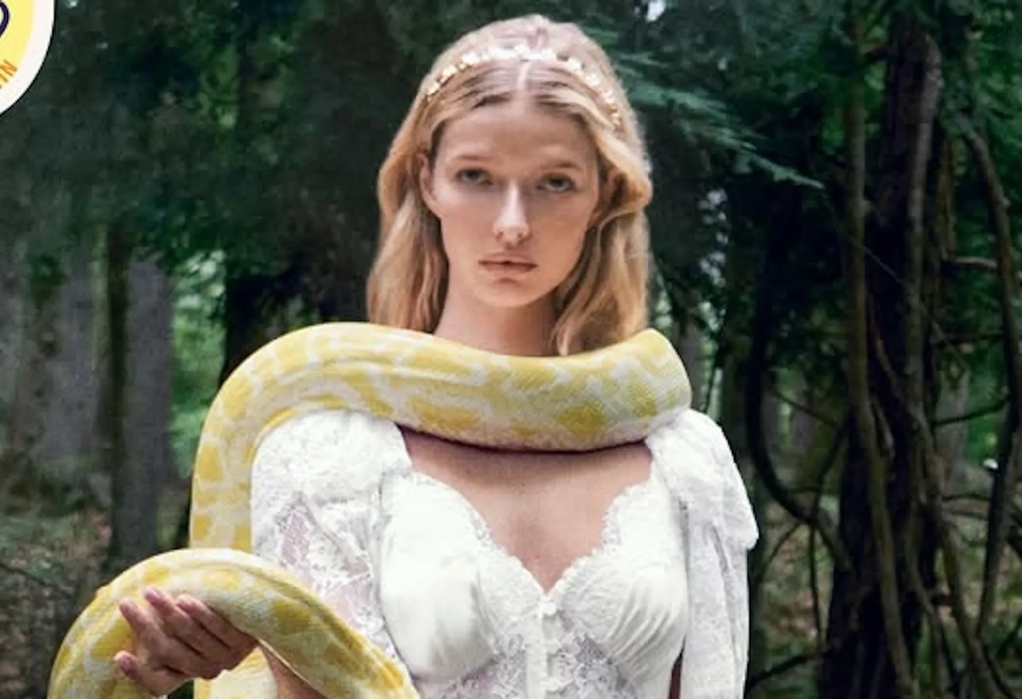 На одном из снимков дочь голливудской актрисы Гвинет Пэлтроу и солиста группы Coldplay Криса Мартина позирует в белом платье со змеёй на плечах, а на другом — лежит на траве среди яблок в мини-платье в горох (кстати, имя Эппл переводится с английского как "яблоко"). Также nepo baby снялась в серебристом платье с пайетками и с луком со стрелами в руках.