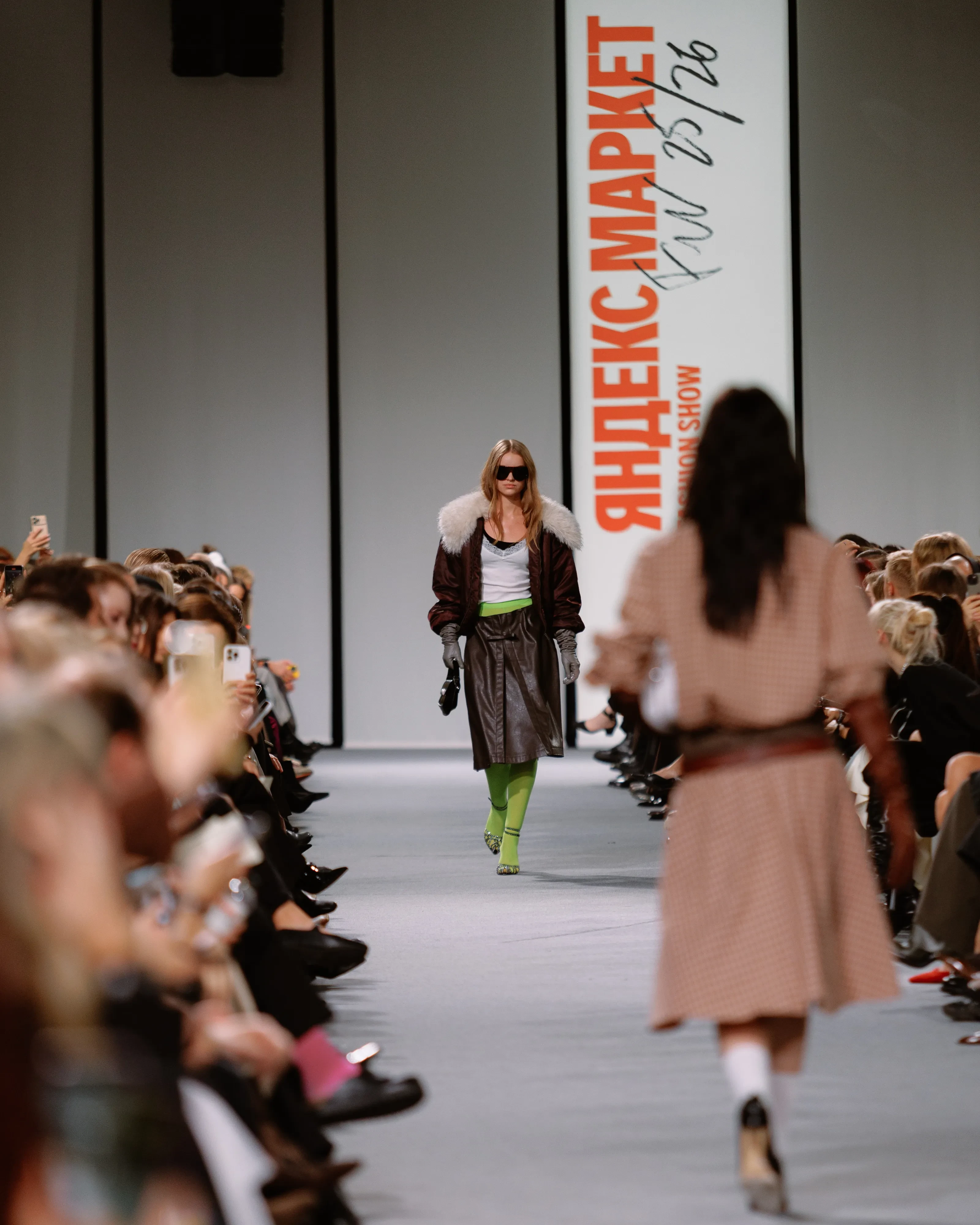 Елена ПерминоваЕлена ПерминоваМарк ЭйдельштейнМария МиногароваАлександр ГорчилинМария Миногарова и Александр ГорчилинЕлена Перминова и Марк ЭйдельштейнПолина ЗиновьеваАнфиса ИбадоваВ рамках показа "Яндекс Маркет Fashion Show" представили 100 образов от 62 брендов. Среди них — российские дизайнеры Хохлома, Синика, Select Studio, Ushatava и Called a Garment (NUW). На подиуме также представили коллекции и зарубежных брендов, среди которых появились Mango, Calvin Klein, Guess, Levi's, No One, Marc O'Polo и другие. За стиль всех образов отвечали стилисты Никита и Илья Хованские — номинанты рейтинга Forbes "30 до 30" 2025 года в категории "Мода и дизайн". Продюсером показа стал Артём Кривда.