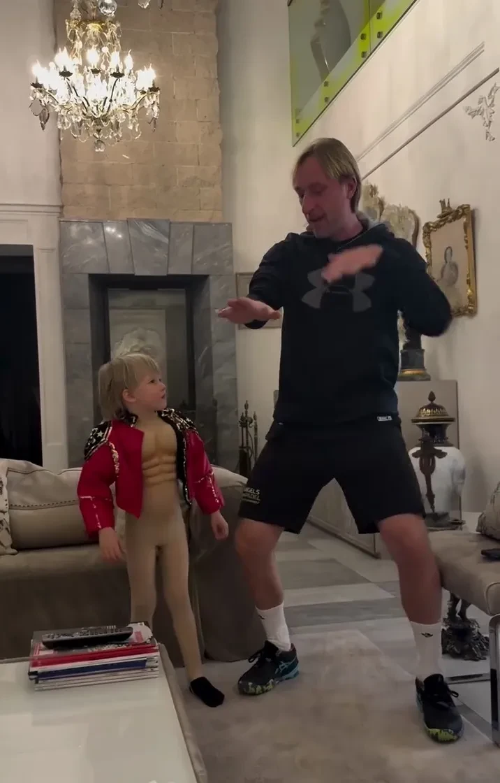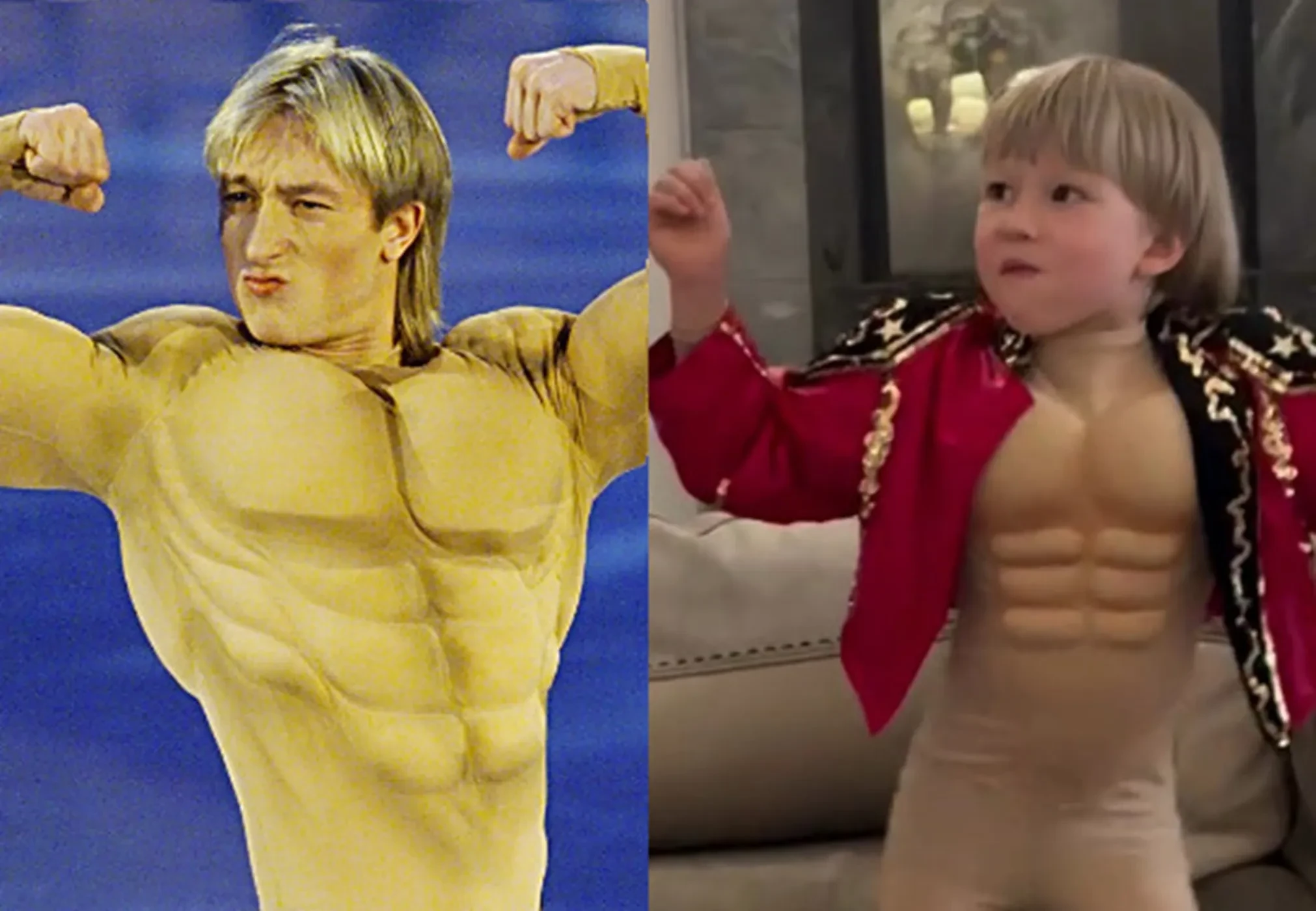 Младший сын Евгения Плющенко повторил его легендарный танец в костюме "качка"