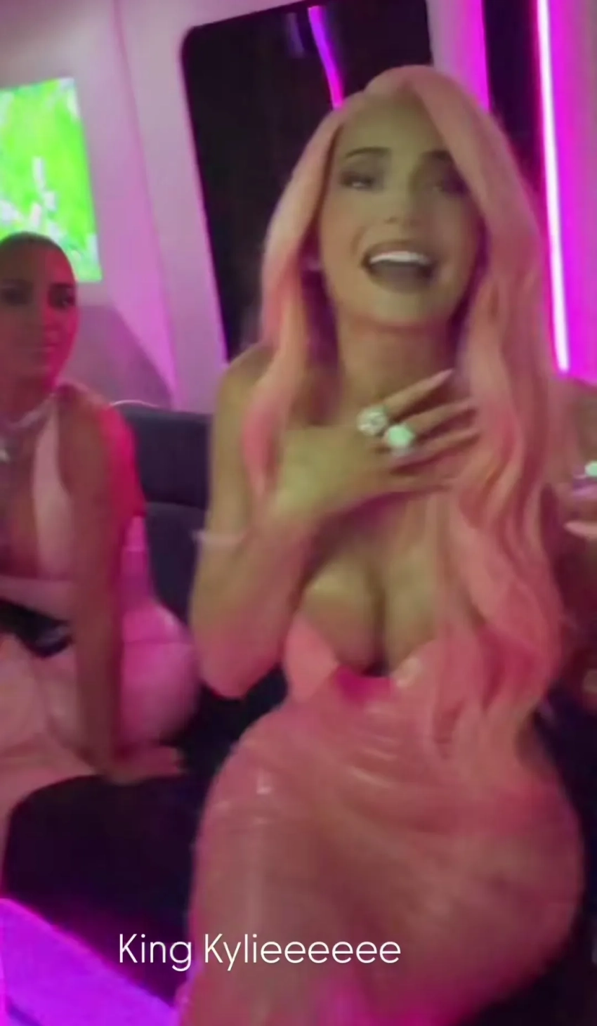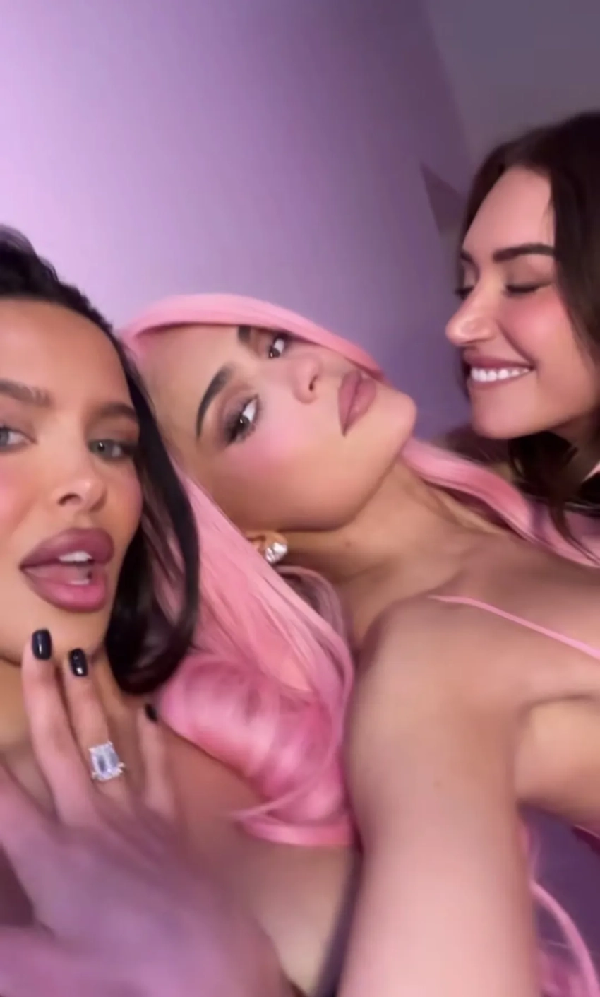 Кайли Дженнер с розовыми волосами, Ким Кардашьян, Кендалл Дженнер, Хейли Бибер отметили 10-летие Kylie Cosmetics