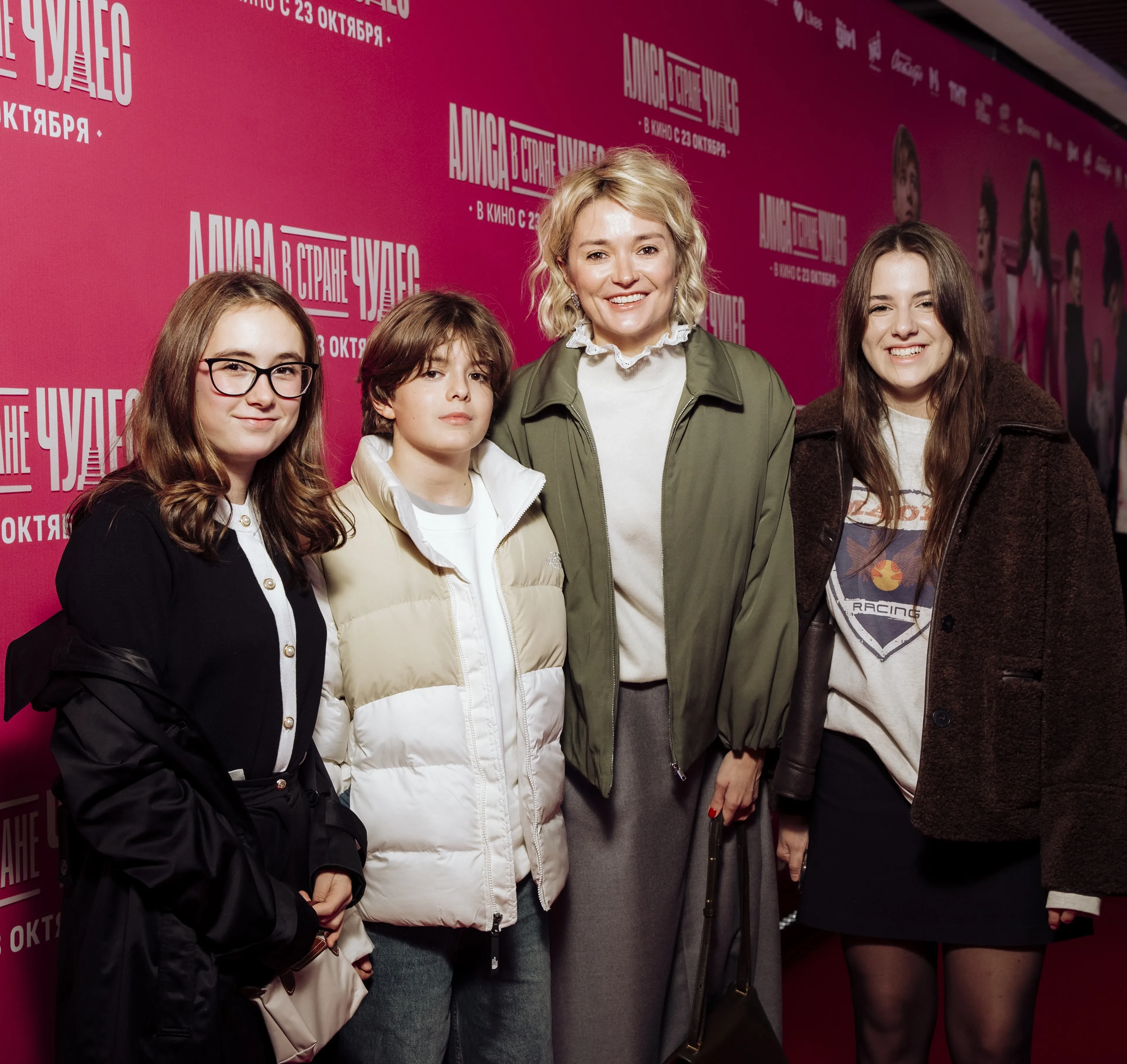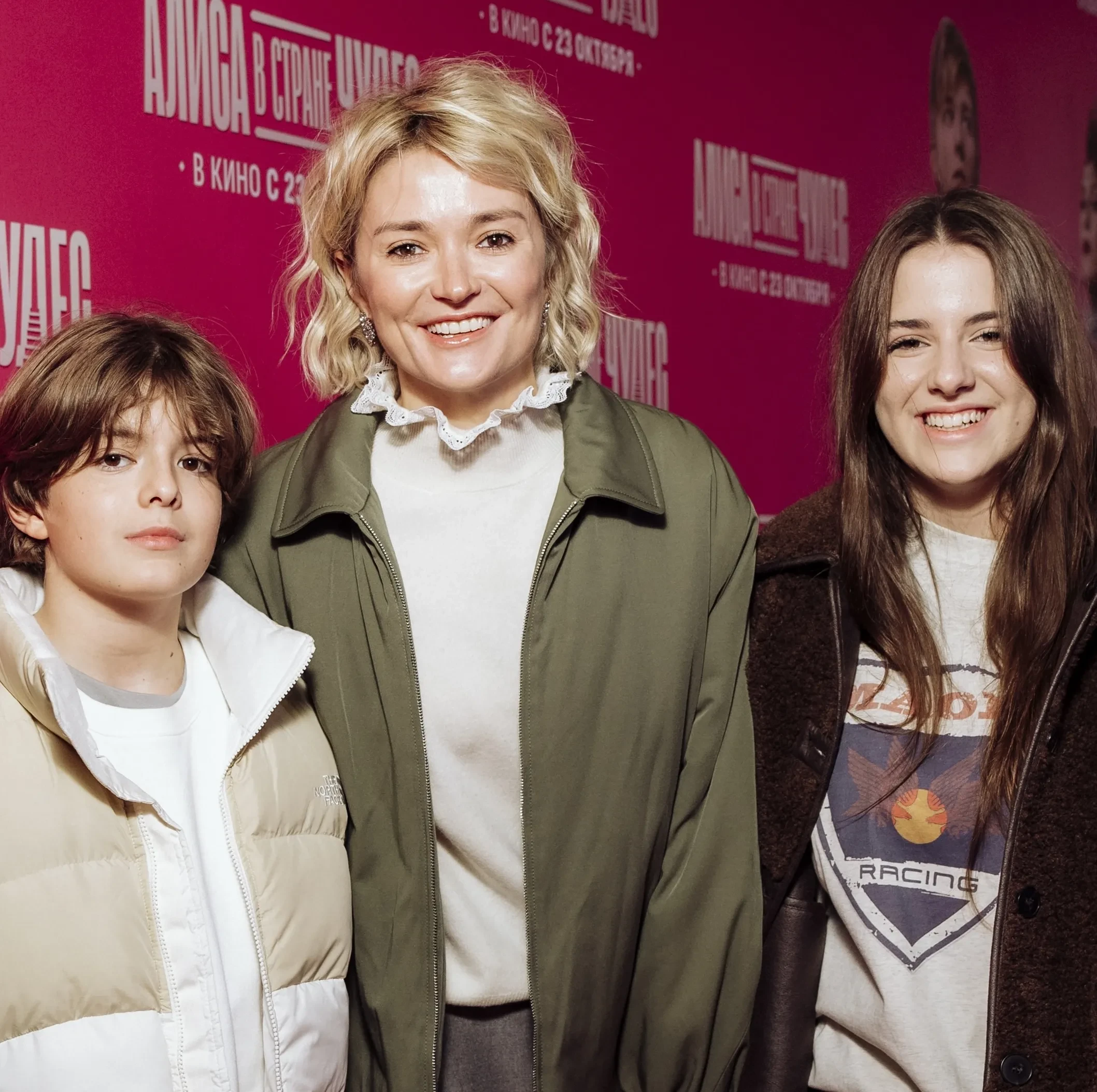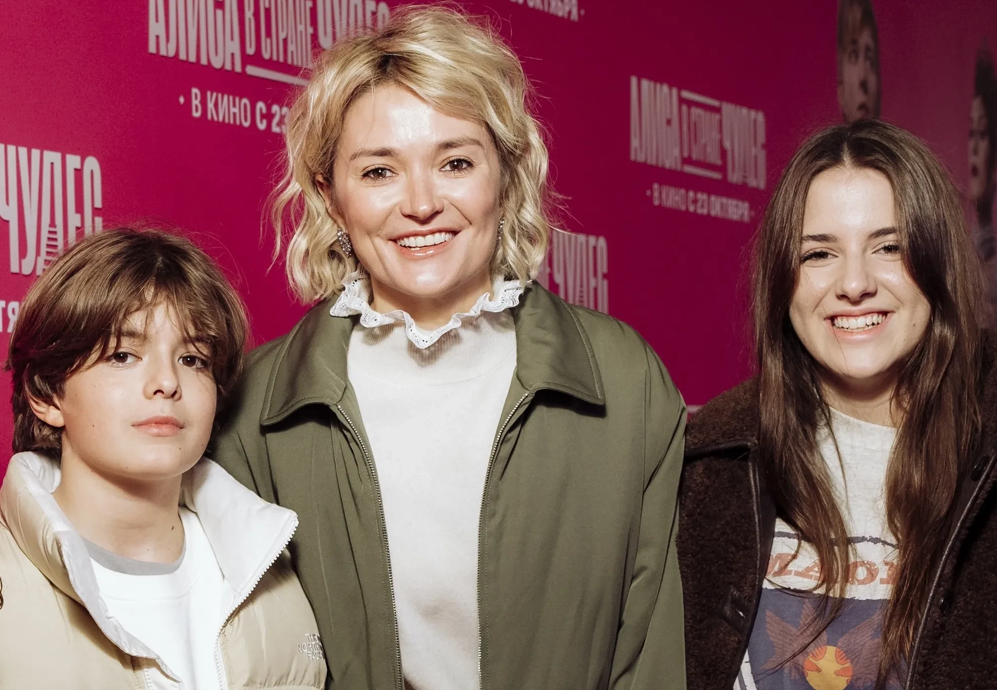 На красной дорожке Надежда позировала вместе с 14-летней дочерью Ниной, 12-летним сыном Иваном и 12-летней племянницей Лидией — дочерью старшей сестры Анны Михалковой. Для выхода в свет актриса, которая недавно стала лицом бренда одежды Ololol, выбрала белую блузу и серую юбку.