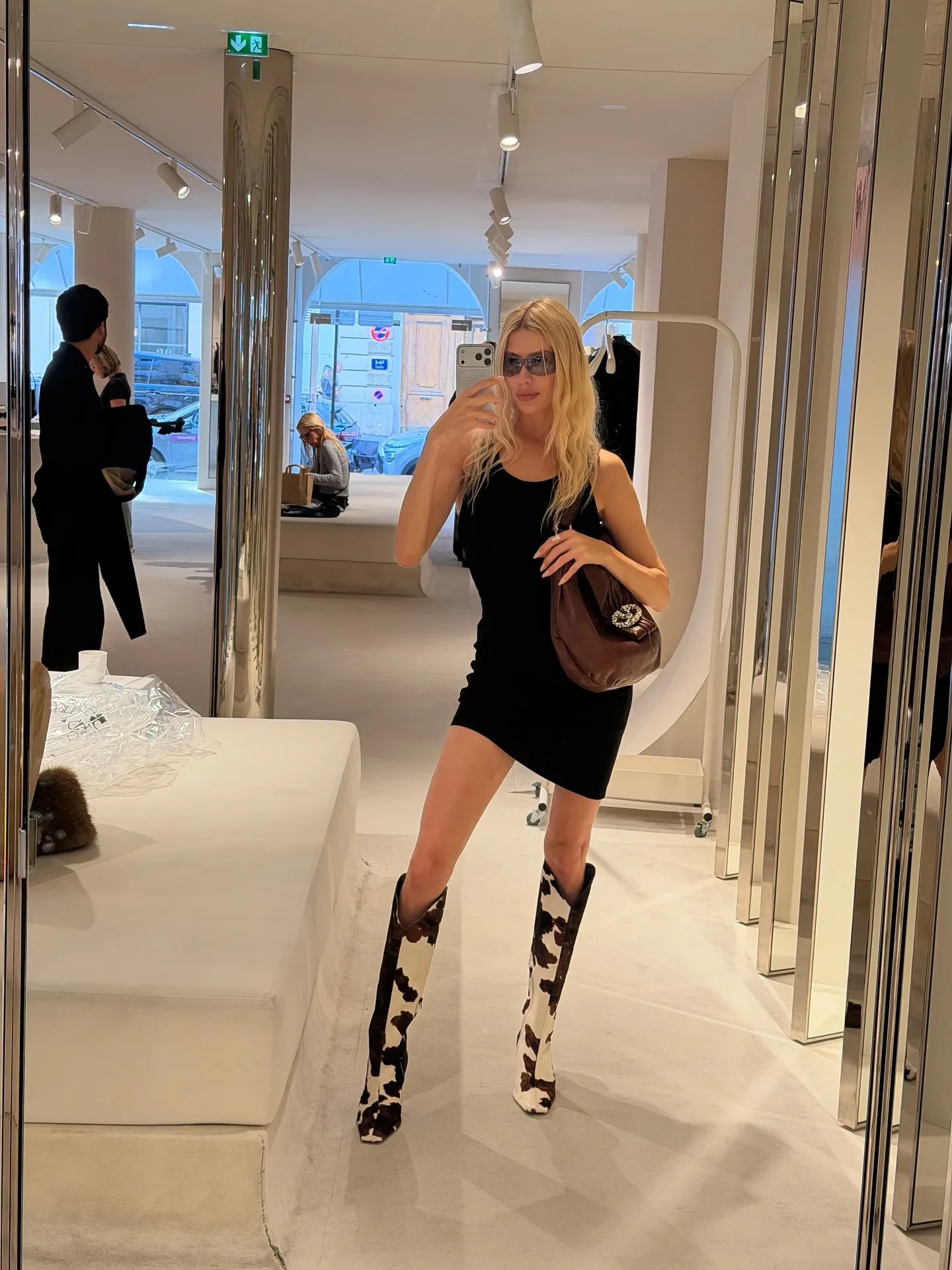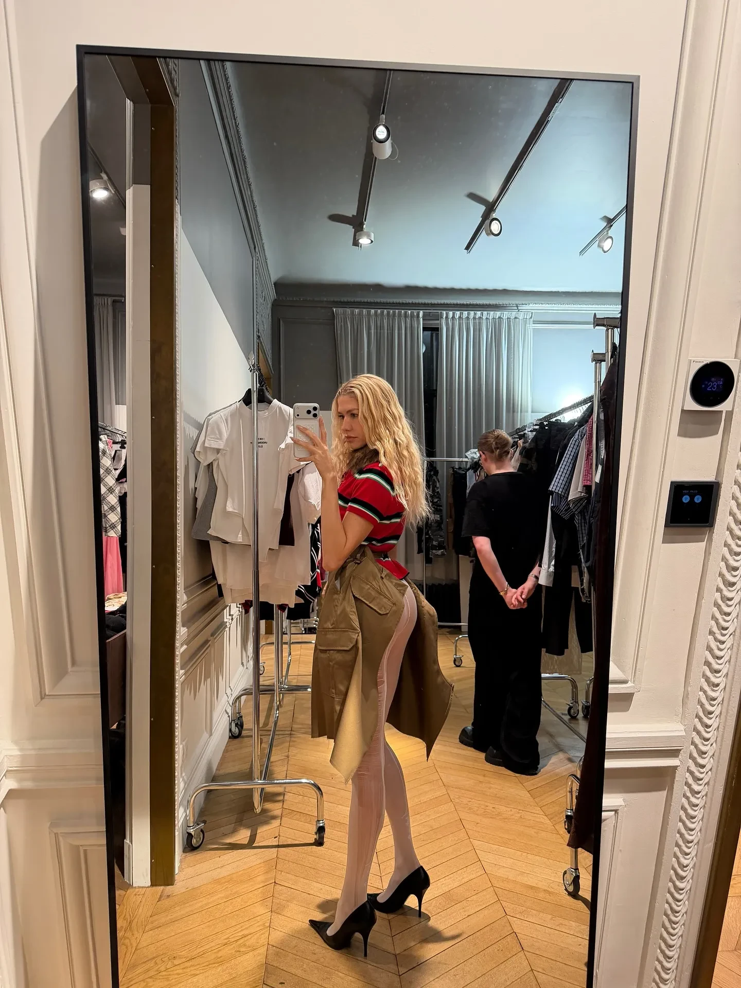 На снимках 39-летняя Перминова позирует в разных образах — от мини-платьев до расслабленных повседневных луков, а также гуляет и сидит за столиком в ресторане. Все снимки с Тарасом сделаны на показах, которые пара посещала, в том числе на шоу Vetements в Париже.
