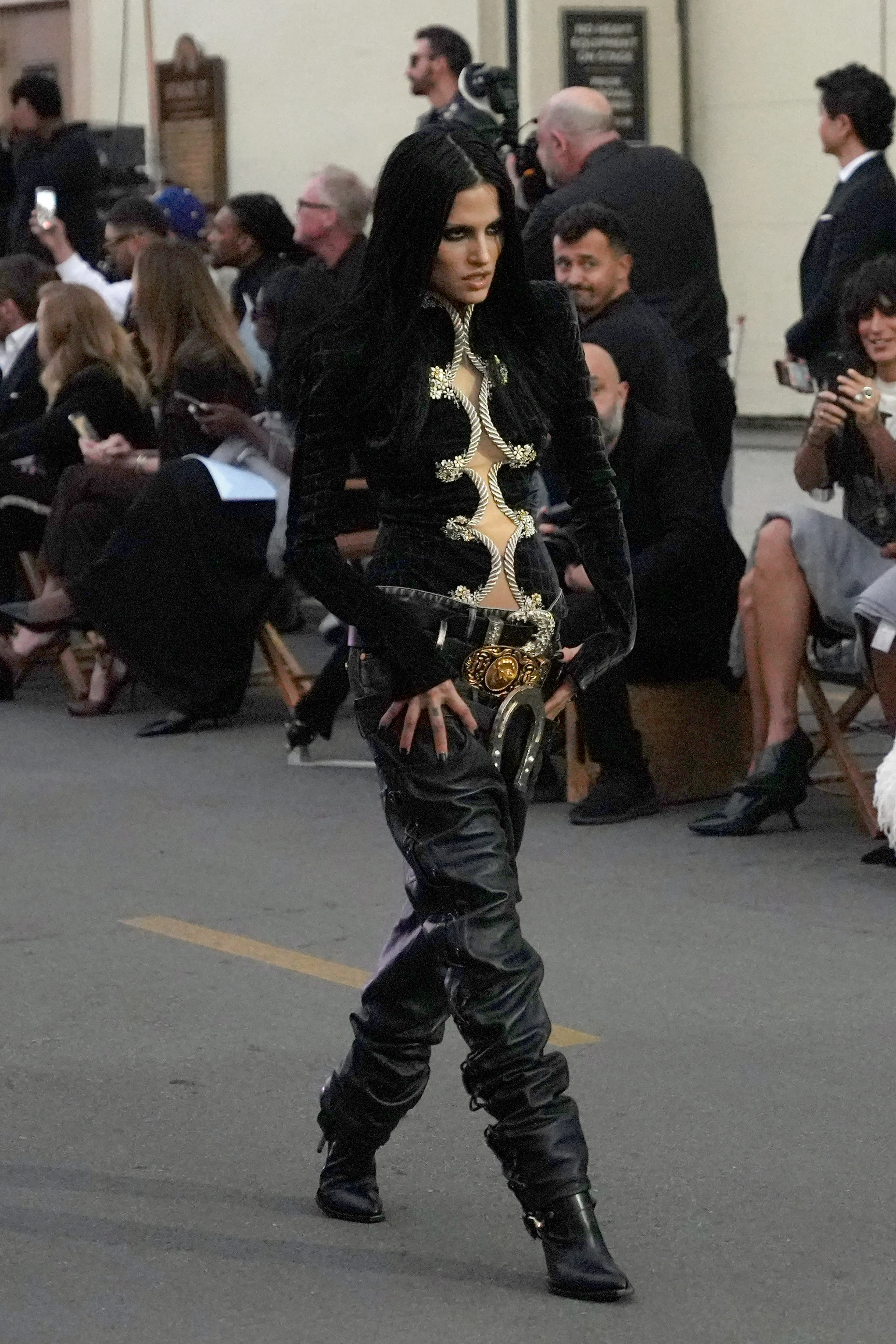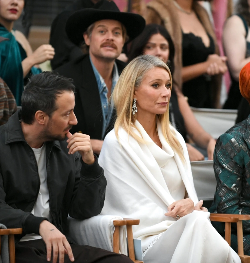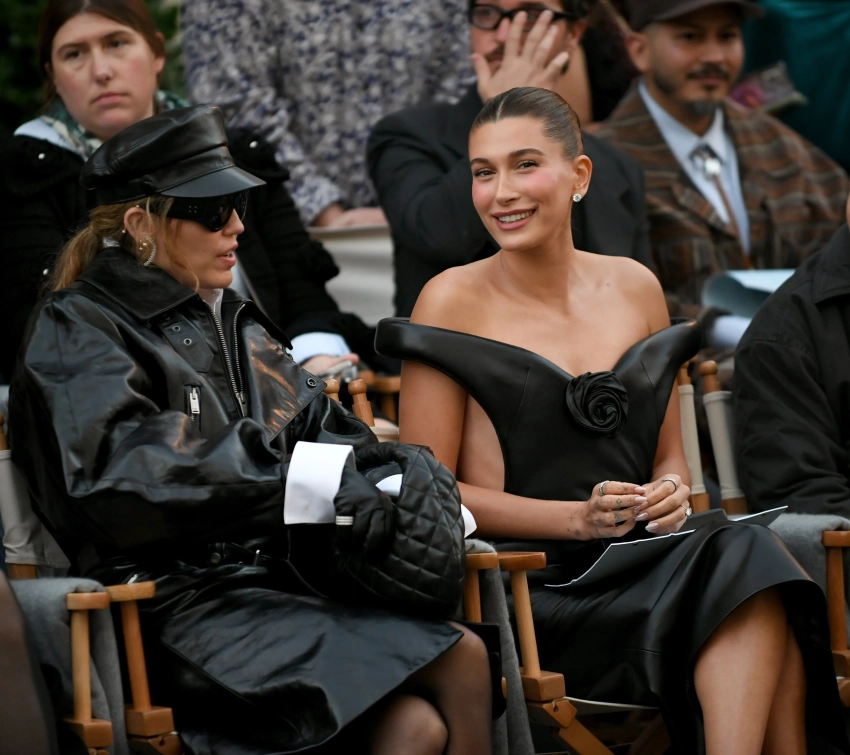 Майли Сайрус и Хейли Бибер в нарядах из кожи сидели в первом ряду рядом с Гвинет Пэлтроу и креативным директором Yves Saint Lauren Энтони Ваккарелло. 38-летняя Хилари Дафф пришла на шоу в образе с полупрозрачной юбкой, а Бруклин Бекхэм и Никола Пельтц позировали в чёрных брючных костюмах. Похожий образ выбрали также супруги Рита Ора и Тайка Вайтити. 52-летняя Хайди Клум надела прозрачное белое платье, а 54-летняя Дженнифер Коннелли — мини-платье с бахромой.