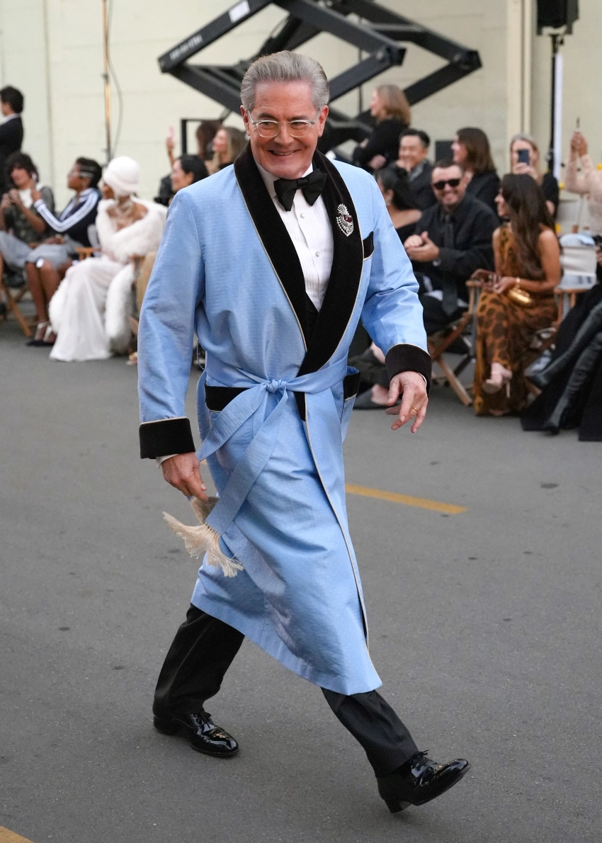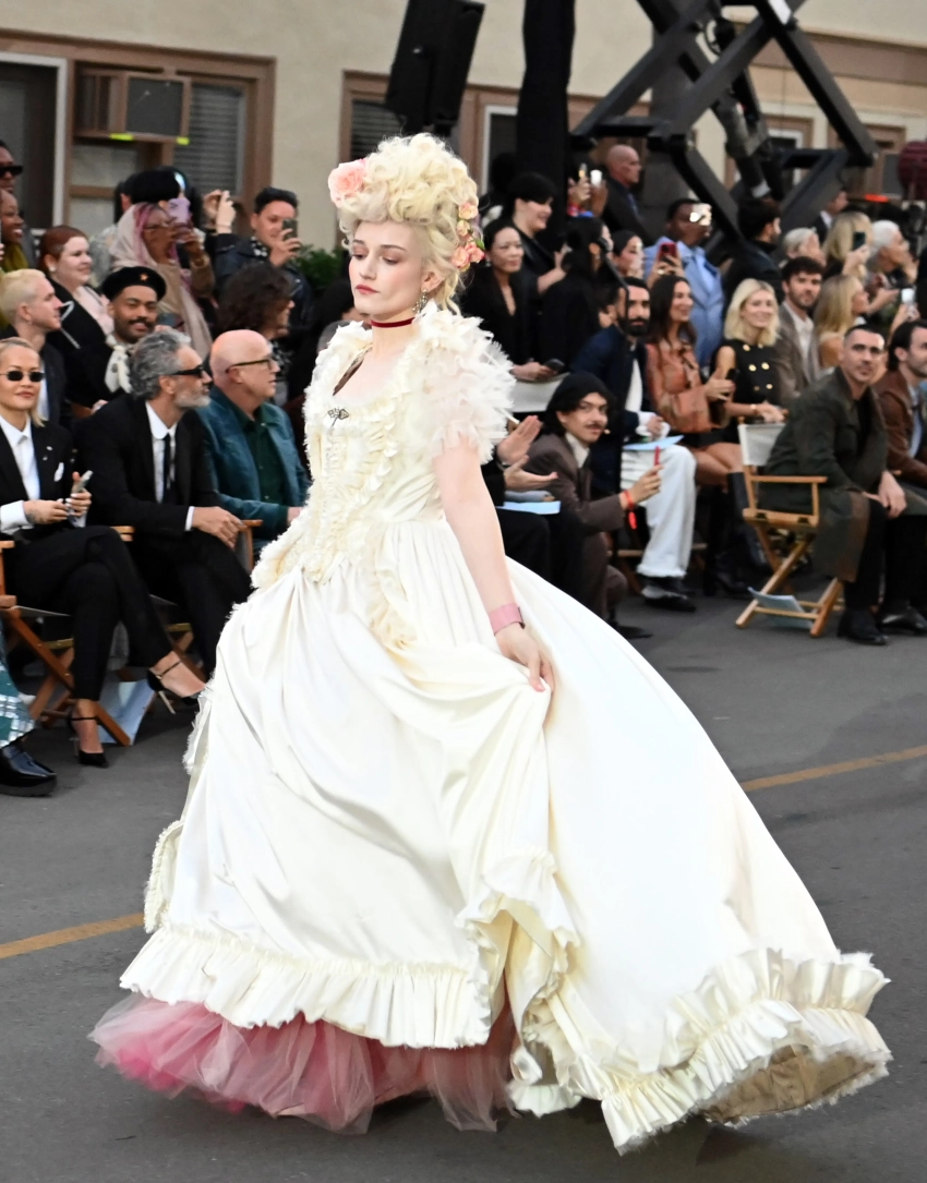 Майли Сайрус и Хейли БиберЭнтони Ваккарелло и Гвинет ПэлтроуХейли Бибер и Мэйв Рейли (инфлюенсер)Хилари ДаффМайли СайрусБруклин Бекхэм и Никола ПельтцХайди КлумДженнифер КоннеллиРита Ора и Тайка ВайтитиМэнди МурНина ДобревMachine Gun KellyБарбара Палвин и Дилан СпроусТомми Хилфигер, Ди Оклеппо Хилфигер, София Ричи Грейндж и Эллиот ГрейнджНа шоу Vogue World: Hollywood 2025 дизайнеры представили образы, вдохновлённые кино и творчеством известных голливудских костюмеров. Например, топ-модель Алекс Консани вышла на подиум в образе Гвинет Пэлтроу из фильма "Семейка Тененбаум".