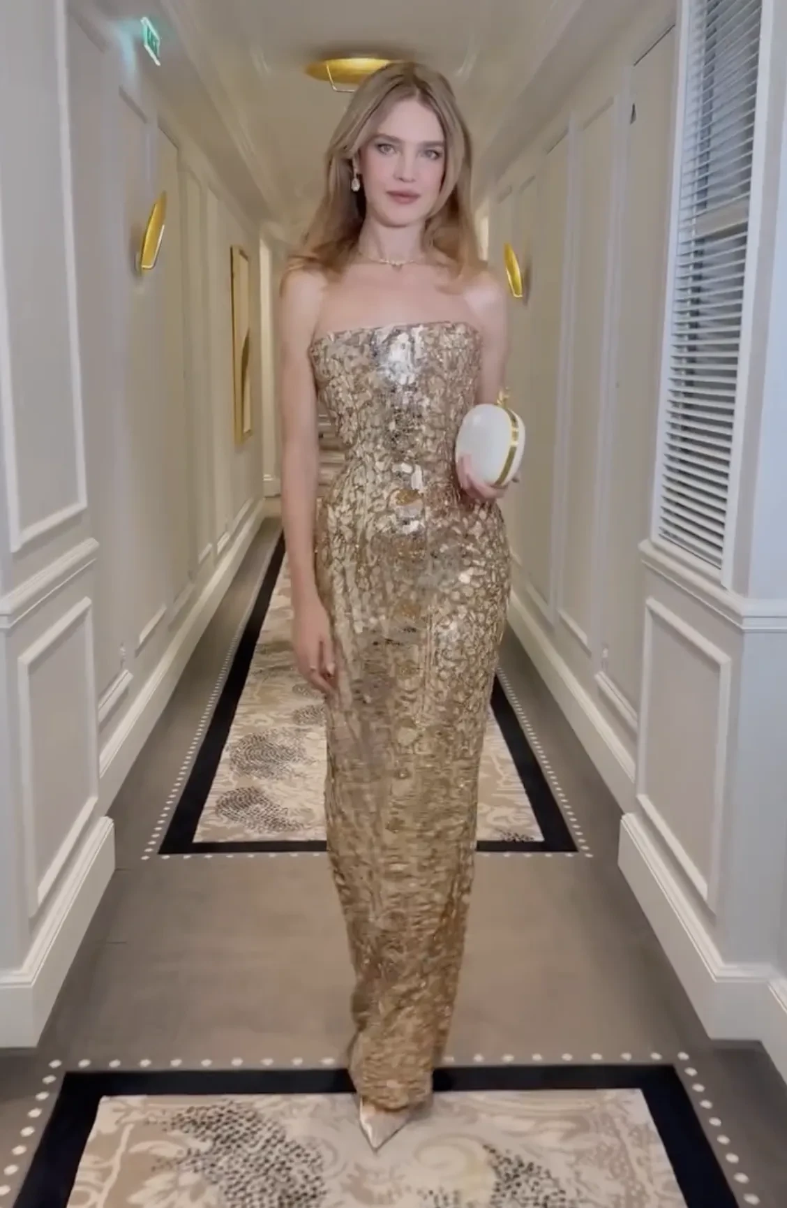Наталья Водянова в золотом платье и бриллиантах вышла в свет в Монако