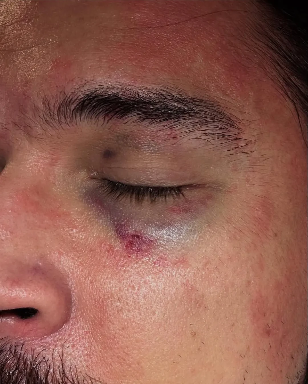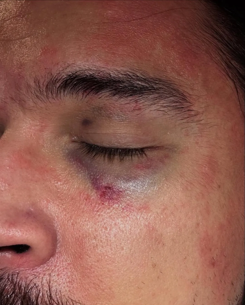 Никита КалмыковНикита КалмыковКалмыков рассказал, что у него разбит глаз, внутренняя гематома щеки и надкостницы челюсти, отдавлен палец и травмировано колено: "Били ладонью как ракеткой, чтобы не было крови, один из них прыгнул на боковую часть колена, чтобы я не мог встать. От удара в глаз я был дезориентирован и не видел. Не знаю, что делать дальше, и боюсь обращаться в полицию. А главное — не хочу, чтобы такое случилось ещё с кем-то. Детали места и времени я пока не могу разглашать из соображений безопасности".