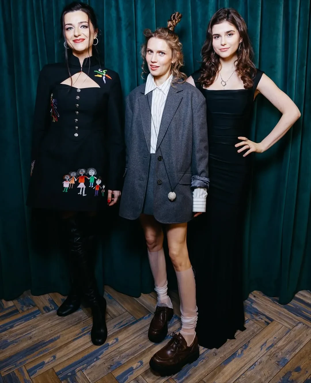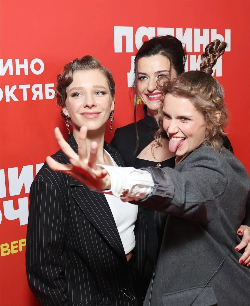 Звёздами дорожки стал первый состав легендарного сериала нулевых "Папины дочки". Сыгравшие сестёр Елизавета Арзамасова, Дарья Мельникова, Анастасия Сиваева впервые за долгое время позировали вместе. 33-летняя Дарья Мельникова пришла на премьеру в тотал-луке Lime, 30-летняя жена Ильи Авербуха Елизавета Арзамасова надела брючный костюм в полоску, а 33-летняя Анастасия Сиваева позировала в чёрном платье с вышивкой и кожаных ботфортах.