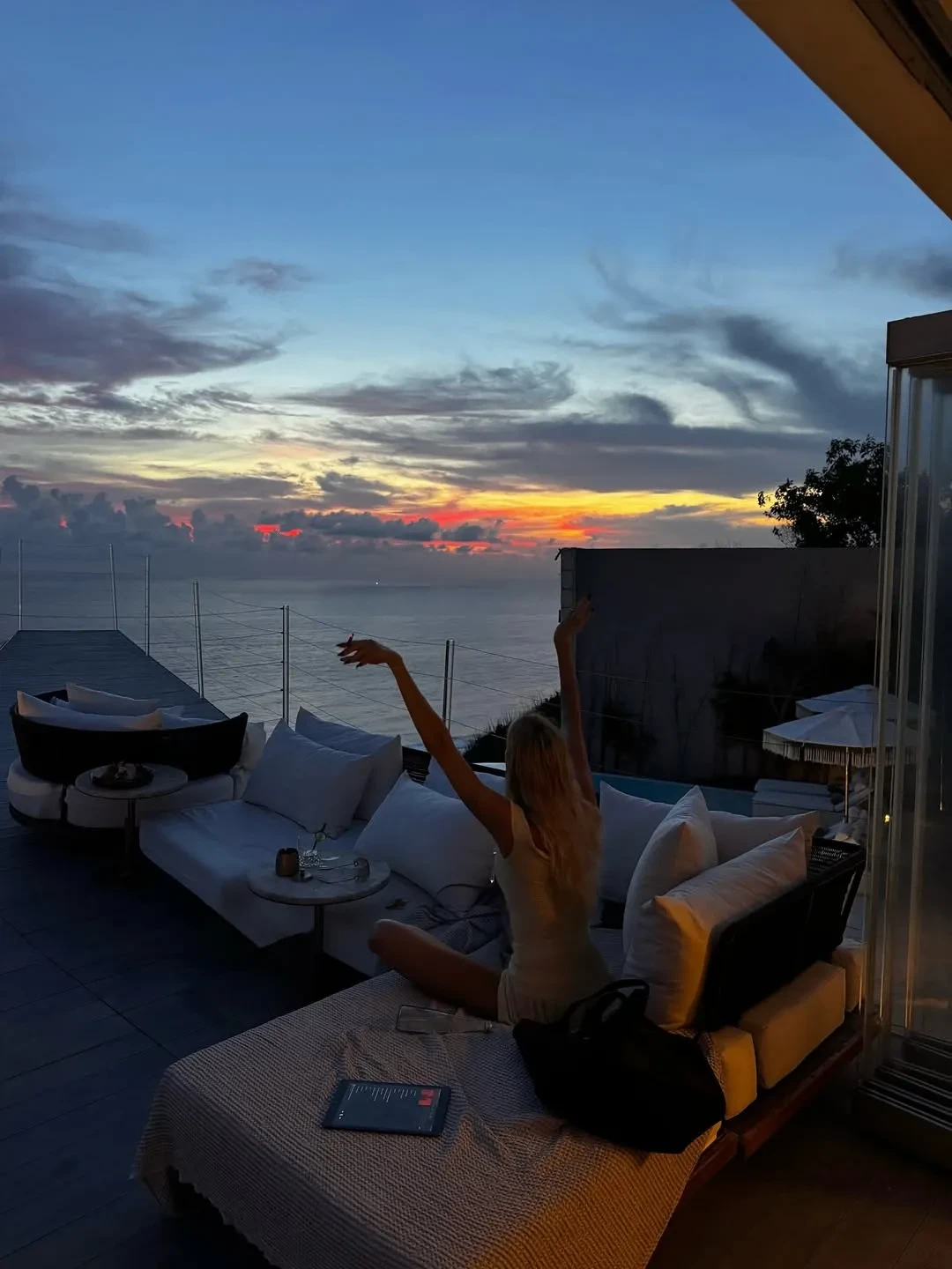 На острове Перминова с Тарасом, детьми и друзьями отдыхает на роскошной вилле, купается в океане, загорает на местных пляжах и наслаждается закатами. "Как же мне так чертовски повезло!" — подписала фото Елена.